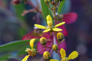 Arbusto ca. 2 m alt. Flores amarillas, frutos rojos