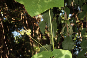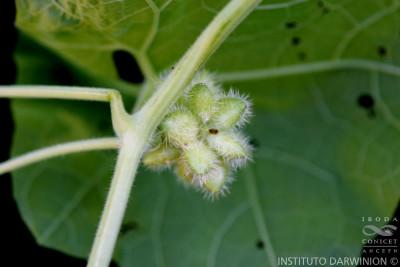 Enredadera. Flores y frutos verdosos