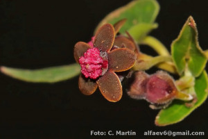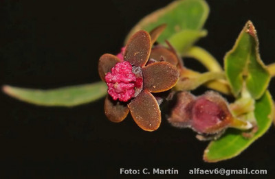Flores bordó. Protólogo publicado en Syst. Bot. 42(3): 578. 2017