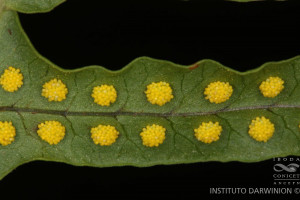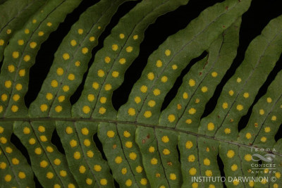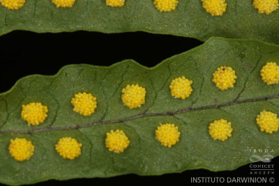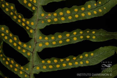 Epífito, hojas pinnadas. Soros circulares amarillos