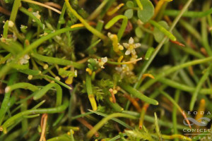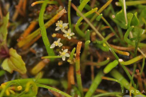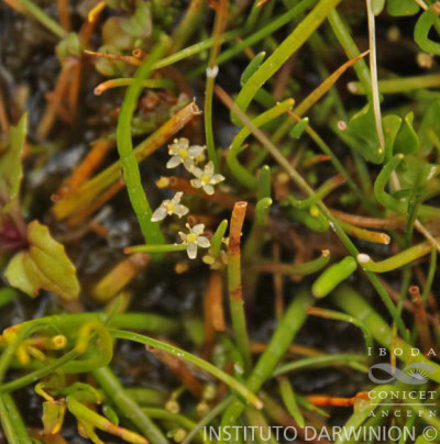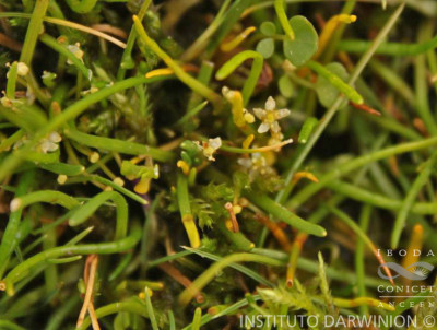 Flor blanca, hojas con secciones transversales. En vega, junto con Euphrasia antarctica