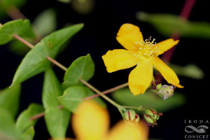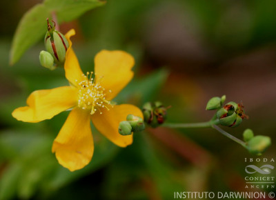 Hierba 50 cm alt. Hojas connadas. Flores amarillas
