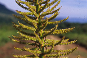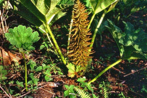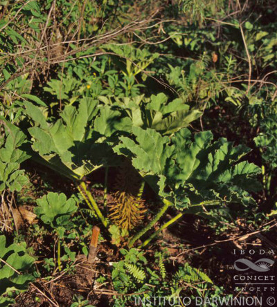 Parte subterránea engrosada, inflorescencia de 45 cm de longitud. En cañadón húmedo, con Pteridium