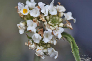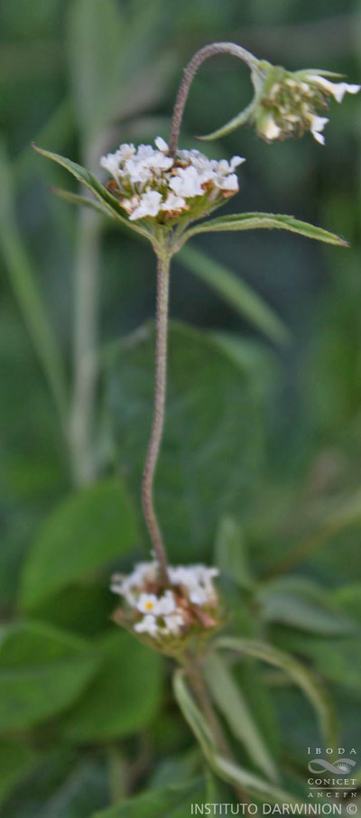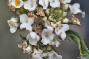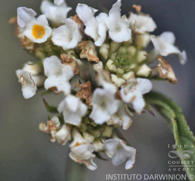 Flor blanca con centro amarillo. Inflorescencia en cabezuela. Fotos.