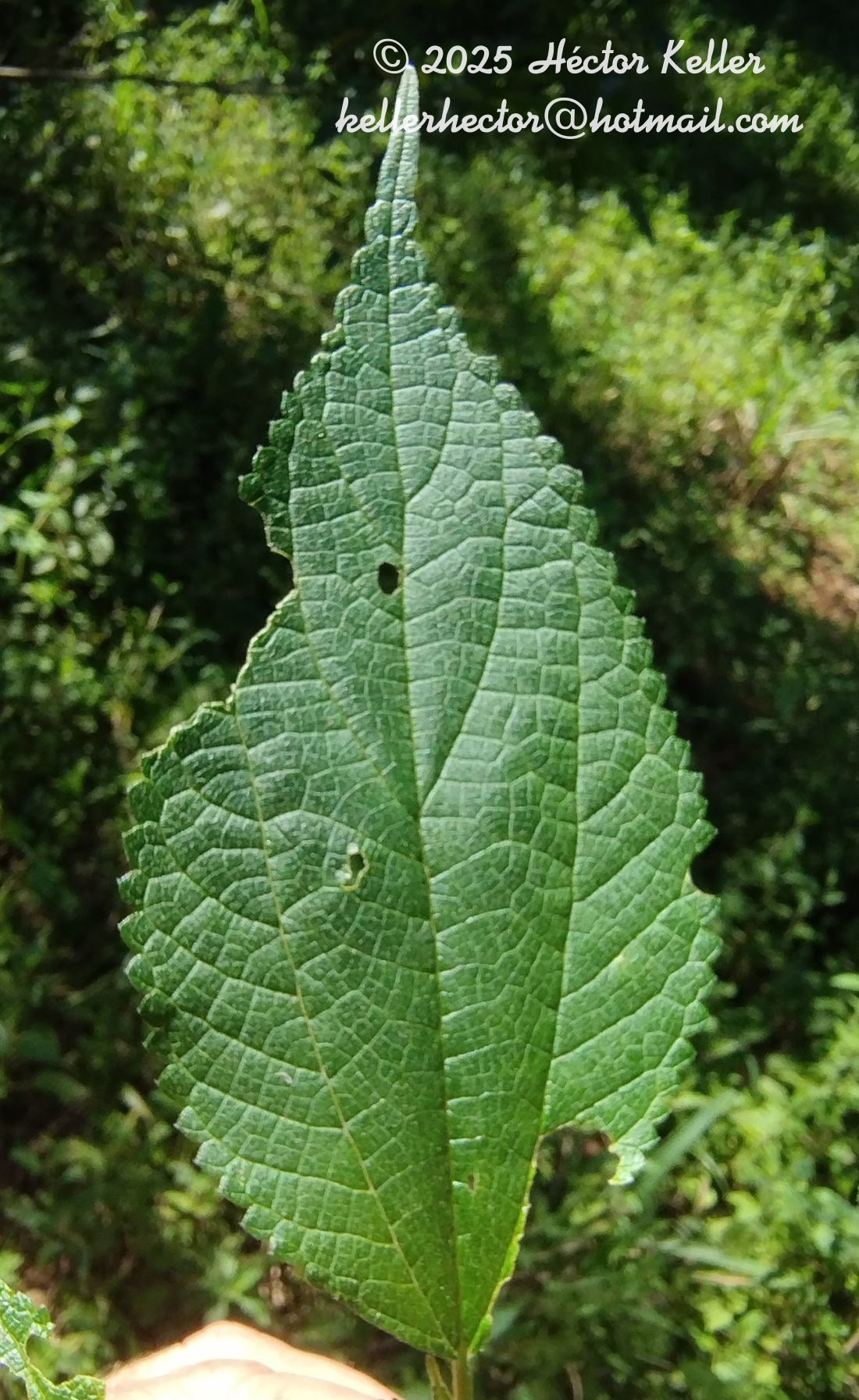 Sufrútices hasta de 2 m de alto; tallos ligeramente estriados, estrigosos, hirsutos o pubescentes. Hojas con pecíolos de 1-7 cm de largo, pubescentes; estípulas ovadas, de 5-8 mm de largo; lámina elíptica a elíptico-lanceolada, de 2,5-13,5 × 1-6 cm, base cuneada, obtusa o redondeada, el margen serrado en la mitad superior. Glomérulos de 0,9-1,1 cm de diámetro; brácteas obovadas, de 1-2,5 mm de largo. Flores estaminadas subsésiles, tépalos con lóbulos apiculados, con tricomas simples y uncinados en el ápice. Flores pistiladas con estigma de 2-4,2 mm de largo. Aquenio de 0,7-1,2 mm de largo, pericarpo verrucoso.
