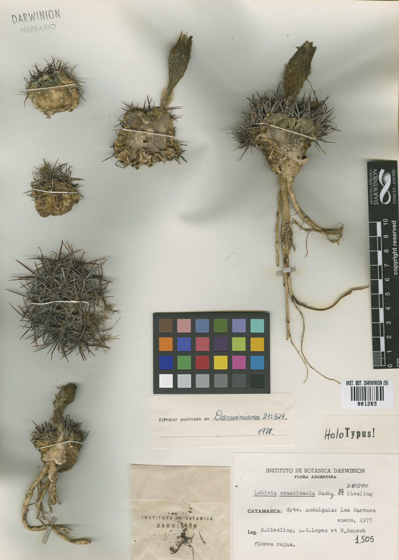 Material Tipo: Argentina. Catamarca. Dpto. Andalgalá. Los Narváez, Ene 1977, R. Kiesling 1505 (holotipo, SI).