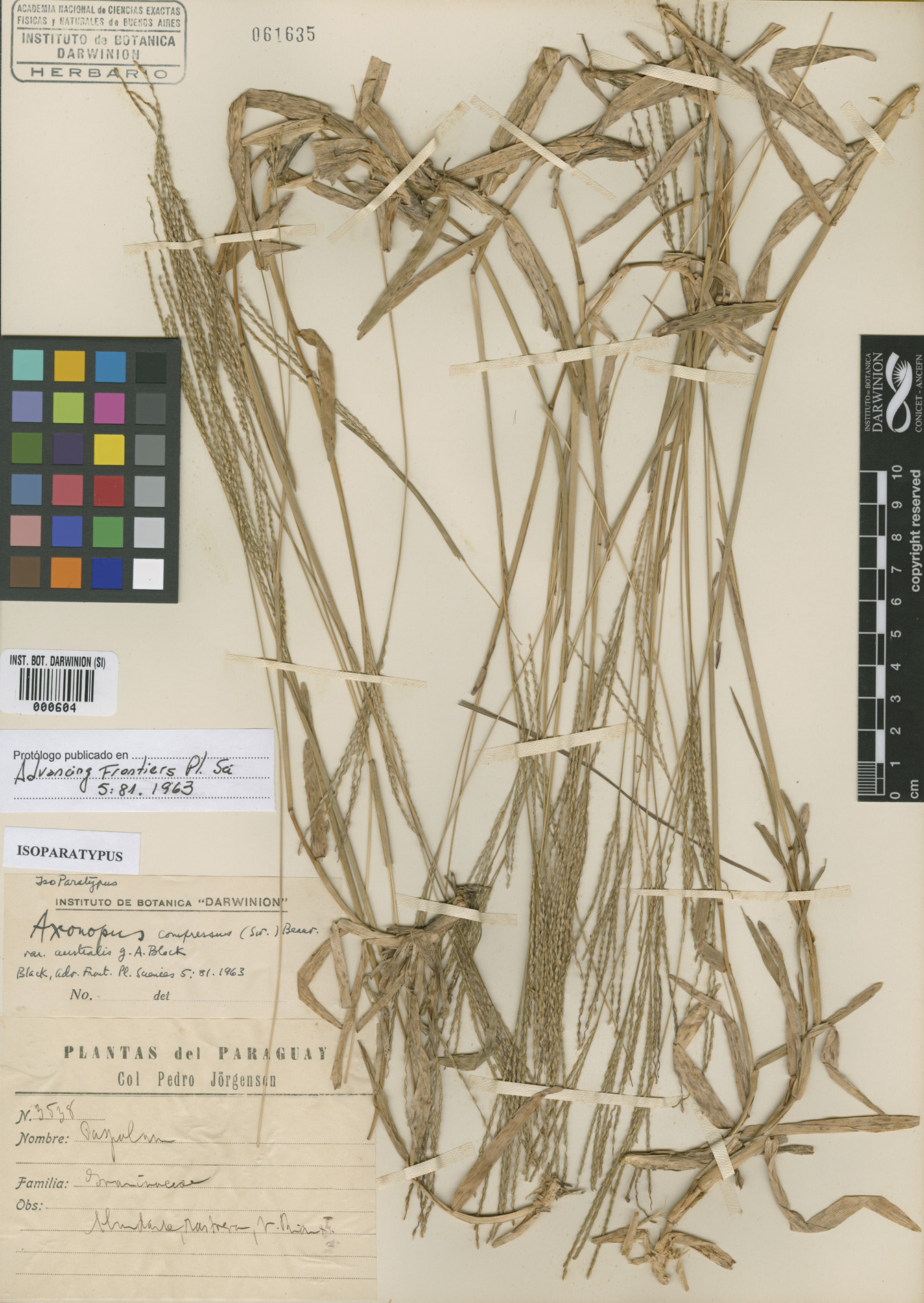 Tipo de Axonopus compressus (Sw.) P. Beauv. var. australis G.A. Black