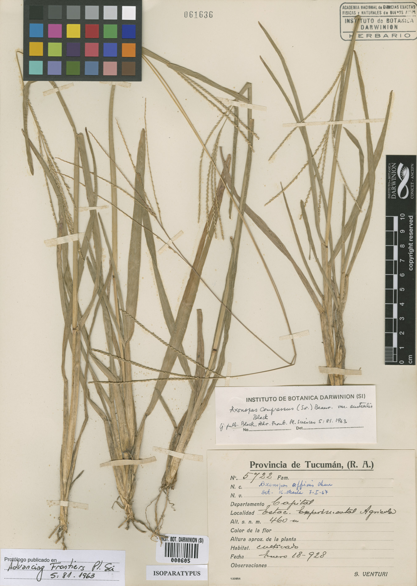 Tipo de Axonopus compressus (Sw.) P. Beauv. var. australis G.A. Black