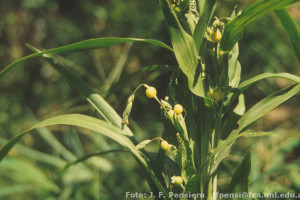 Plantas perennes, anuales o bianuales, de 0,70-1,50 m de altura; cañas huecas, plurinodes, ramificadas; láminas planas, de 20-40 x 3-3 cm, subcordas. Inflorescencias terminales y axilares formadas por numerosos involucros de 0,6-0,10 cm de diámetro, globosos o piriformes, papiráceos, coriáceos y endurecidos a la madurez, blanquecinos, grisáceos o marfilinos y brillantes; cada involucro contiene una inflorescencia femenina y una masculina terminal, emergente del mismo.