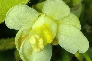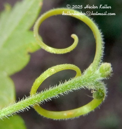 Trepadoras pubescentes, menos frecuentemente pubérulas o glabras; indumento de tricomas simples, blanquecinos o amarillentos, breves, curvos o erectos y tricomas glandulares diminutos en tallos, hojas, ejes de inflorescencia y frutos; tallos jóvenes con 5-6 costillas redondeadas, de 1,5-3 mm de diámetro, luego teretes. Hojas con estípulas triangulares o filiformes, de 1-2,5 mm de largo, persistentes; pecíolo de 1-6 cm de largo; peciólulo 7-14(-27) mm de largo en folíolo terminal, marginado, de 2-5(-20) mm de largo en los restantes; folíolos ovados u ovado-anchos, de 3,8-8,5(-11) × 2,8-5,5(-9) cm, pinnatífidos, pinnatipartidos o pinnatisectos, los laterales asimétricos, semilámina externa con incisión basal más marcada, cartáceos, discoloros; base decurrente en el folíolo terminal, redondeada o truncada en los restantes, ápice obtuso, raro agudo, mucronado, inciso-dentados con 2(-3-4) incisiones, numerosos dientes; cara adaxial pubescente, pubérula o glabra, cara abaxial pubescente o glabra. Inflorescencias en tirsos racemiformes, tirsos simples o dobles, cincinos con numerosas flores; pedúnculo del cincino de 1,5-7 mm de largo, pedicelo floral de 4-5 mm de largo, en fruto de 2-5 mm de largo, articulado en 1/3-1/4 distal; brácteas triangulares o filiformes, de 0,75-1,25 mm de largo. Flores de 4-5(-7) mm de largo; sépalos externos ovado-anchos, de 2-2,75 mm de largo, glabros o con sétulas en la cara externa, los internos ovado-anchos u obovados, de 3-4,5 mm de largo, glabros, los 2 anteriores soldados en la base, margen con diminutos tricomas glandulares; pétalos obovados, de 2,75-4,25 mm de largo, glandulosos en cara interna, escama con cresta entera o emarginada en los pétalos posteriores; lobos nectaríferos posteriores ovoide-obtusos o suborbiculares, anteriores de contorno suborbicular, glabros; androginóforo glabro, con un anillo de tricomas en la zona de inserción de estambres o pubescente; flor estaminada con estambres de 3-4 mm de largo, filamentos glabros, pubérulos o pubescentes, anteras con expansión apical del conectivo, en la flor pistilada estambres ca. 2 mm de largo; pistilodio con tricomas glandulares sobre el ovario; gineceo de 3,5(-6) mm de largo, ovario sólo con tricomas glandulares o velloso, estilo generalmente más corto que ramas del estigma, hasta nulo, raro más largo. Fruto cápsulas de contorno elíptico, obovado o suborbicular, de 2,5-4,3(-6) × 1,6-3(-3,4) cm, incluido estípite de 0,5-3 mm de largo, subcartáceas, amarillo-pajizas; ápice apenas emarginado, raro agudo; lóculos inflados, de 1,6-3 × 0,5-1,2 cm; alas de 0,1-0,4 cm de ancho; epicarpo pubescente, pubérulo o raro glabro; endocarpo glabro. Semillas 3 maduras, elipsoides, de 3-4 mm de diámetro, insertas ca. en la mitad de los lóculos, arilo cordiforme, blanquecino, seco.