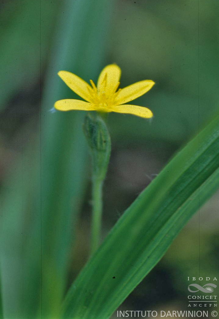 Hierba perenne, de 7-20 cm de alto, de cormo ± tuberiforme, ca. 1-3 cm × 1-2,5 mm, con raíces ± carnoso-fibrosas, rodeado a veces por fibrillas remanentes de las hojas basales. Hojas numerosas, envainadoras, rosuladas, alrededor de 6-35 × 0,5-1,3 cm, linear-subuladas, atenuadas hacia el ápice, extendidas o flexuosas, de dorso aquillado, atenuadas hacia el ápice con pelos sedosos, ralos o raras veces casi glabras. Inflorescencias umbeliformes, 2-3 (-4)-floros o flores solitarias; raquis marcadamente piloso, con 2 brácteas lineares en cada nudo floral, escapos de 10-20 cm de largo. Flores de 6-15 mm de diám., pedicelos hasta 2 cm de largo, pilosos. Tépalos oblongo-lanceolados, ca. 4-9 × 1,3-3 mm, los externos, amarillo verdosos, pilosos en la cara abaxial, los internos amarillos escasamente pilosos o glabros. Estambres subiguales, los opuestos a los tépalos externos ligeramente más largos que los opuestos a los tépalos internos, anteras de 3 mm de largo, sagitadas, basifijas, versátiles, con conectivo ancho, tecas separadas entre sí en los dos extremos, filamentos libres, unidos entre sí solo en la base. Ovario subclaviforme, no rostrado, de 3,4-5,5 × 1,2-1,5 mm, pubescente; estilo 2,5-4 mm de largo, estigma inconspicuo, papiloso. Cápsulas subglobosas o cilíndricas, triquetras, ca. 0,6-1,3 × 2,5-3,7 mm, superficie verrucosa granulosa, coronadas por los tépalos, caducos a la dehiscencia. Semillas muy pequeñas, de 1-1,2 mm de largo, subglobosas, negras, granulosas, apiculadas, con resto del hilo.