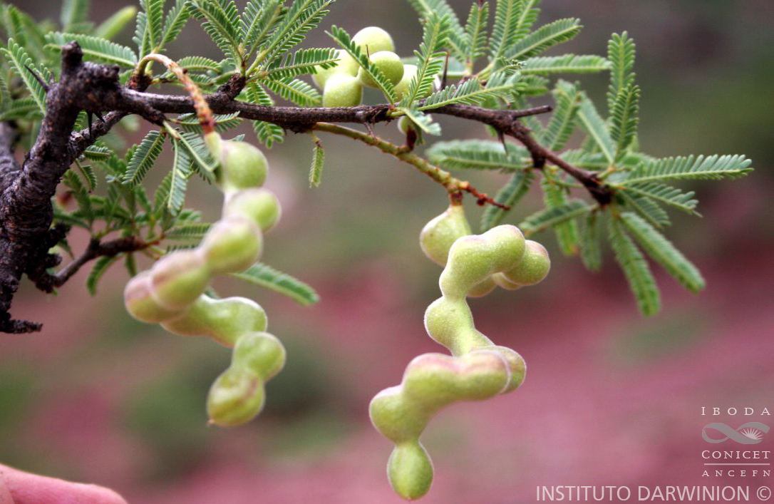 Arbusto o árbol pequeño, de 1,5-5 m de alt. Hojas uniyugadas, pinnas aproximadamente 20-yugadas; folíolos oblongos, 2-4 x 0,8 mm. Inflorescencias ovoides o cortamente cilíndricas. Flores amarillas. Legumbres laxamente espiraladas (2-3 vueltas), articuladas (submoniliformes), istmos placentarios excéntricos, mesocarpo carnoso, endocarpo septado, muy duro. Semillas de 7 x 5 mm.