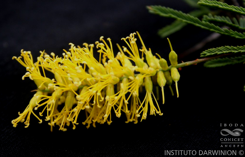 Arbusto o árbol pequeño, de 1,5-5 m de alt. Hojas uniyugadas, pinnas aproximadamente 20-yugadas; folíolos oblongos, 2-4 x 0,8 mm. Inflorescencias ovoides o cortamente cilíndricas. Flores amarillas. Legumbres laxamente espiraladas (2-3 vueltas), articuladas (submoniliformes), istmos placentarios excéntricos, mesocarpo carnoso, endocarpo septado, muy duro. Semillas de 7 x 5 mm.