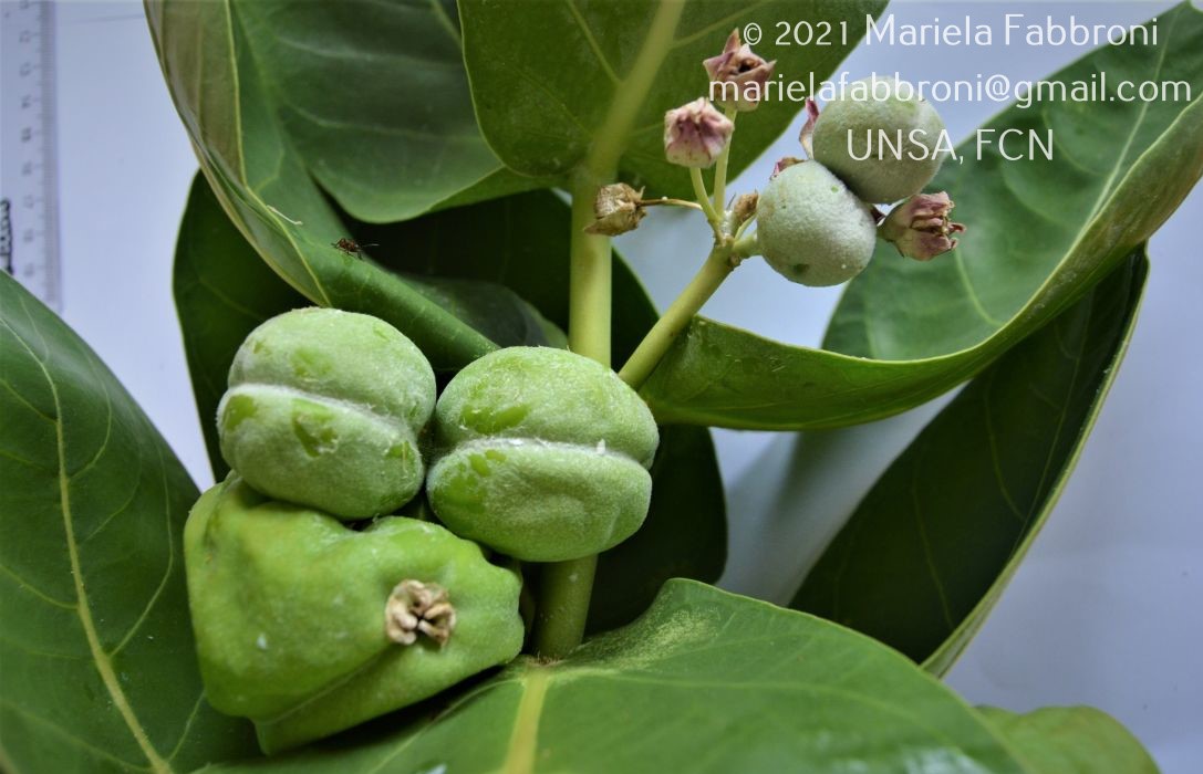 Observaciones: Nombre vulgar y usos. Se desconoce su nombre común en Argentina, pero en otros países latinoamericanos se la denomina frecuentemente “algodón de seda”; es empleada como planta ornamental por la facilidad de su cultivo en zonas cálidas semiáridas y porque es una de las pocas plantas con follaje verde y con flores en invierno (Fabbroni et al., 2021).