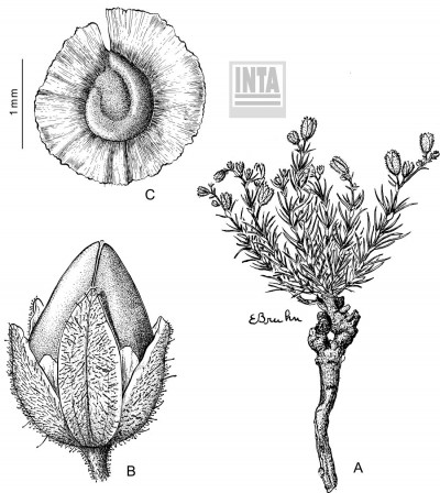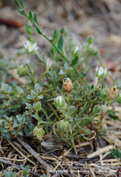 Hierba perenne, de 10-40 cm de alto, erecta a cespitosa; raíz pivotante, a veces carnosa; tallos decumbentes u oblicuos, glabros a glanduloso-pubescentes en toda la planta o generalmente hacia la poción superior. Hojas fasciculadas, lineares a filiformes, de 1-5 × 0,05-0,15 cm, agudas, mucronadas, glabras o glanduloso-pubescentes; estípulas triangulares a lanceoladas, de 1-7 mm de largo, acuminadas, enteras, envainadoras o no, glabras a viloso-glandulares. Inflorescencia en cimas difusas, con pedicelos hasta de 1-3 cm de largo; brácteas 1-4, lanceoladas, de 1-3 mm de largo, mucronadas; sépalos oblongo-lanceolados, de (3-)4-9(-10) mm de largo, ápice obtuso, con el dorso verde y densamente glanduloso-pubescentes, márgenes blancos o generalmente teñidos de púrpura; pétalos ovado-elípticos, de (3-)4-6(-8) mm de largo, blancos; estambres 6-9(-10); ovario ca. 2-2,5 mm de largo; estilos 3, de 0,7-1,5 mm de largo, libres o connados en la base. Fruto una cápsula de (5-)7-10(-11) mm de largo, generalmente más larga que el cáliz. Semillas piriformes, comprimidas, de (0,6-)0,7-0,8(-0,9) mm de diámetro, lisas o a veces con papilas, con ala de 0,3-0,7 mm de ancho, entera o sinuada, pardas.