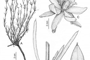 Observaciones: Nombres vulgares y usos. “Arenaria roja”, “arenaria rubra”. Los araucanos-pampas empleaban la raíz cocida en agua para el dolor estomacal; también como diurética. Observaciones. Especie morfológicamente afín a Spergula grandis, la que difiere de S. ramosa la cápsula dehiscente por 5 valvas (característica diagnóstica del género Spergula). También se puede confundir con algunos ejemplares de Spergularia villosa, pero esta última presenta las semillas exaladas o semillas con alas dentadas-fimbriadas, mientras que en S. ramosa todas las semillas presentan alas enteras. Por último, también se puede confundir con Spergularia levis, pero ésta se distingue fácilmente, de S. ramosa por presentar la primera los dorsos de los sépalos completamente glabros. En el protólogo de Spergularia ramosa, Cambessèdes cita, “Nascitur prope urbem Monte-Video. Florebat Novembri”. Se encontraron 4 ejemplares adjudicables a la descripción brindada en el protólogo, uno depositado en MPU y los tres restantes en P. Todos estos ejemplares, presentan el nombre de la especie con la letra manuscrita de Cambéssedes.
