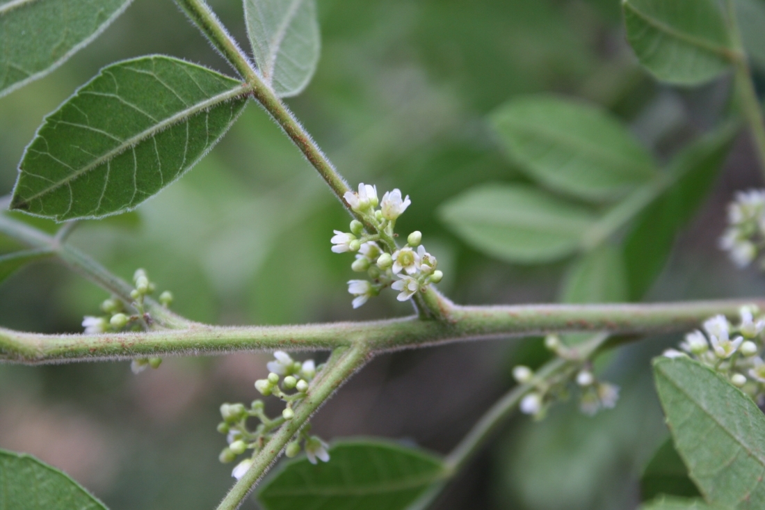 Árboles ramosos, hasta de 15 m de alto, diclino-monoicos; corteza gris oscura, fisurada, agrietada y escamosa con el paso de los años; ramas inermes, pubescentes a tomentosas cuando jóvenes, glabras a la madurez. Hojas imparipinnadas; pecíolo de 1-4 cm de largo, no alado a subalado; raquis alado, en ocasiones subalado; folíolos en 2-10 pares, opuestos, sésiles; lámina elíptica a obovada, en ocasiones oblonga o lanceolada, de 1,5-6 × 0,5-3 cm, ápice agudo, acuminado o mucronulado, base cuneada a obtusa, margen revoluto, serrado, en ocasiones entero, glabra a subglabra en la cara adaxial, tomentosa en la cara abaxial con tricomas ocráceos, en ocasiones con tricomas densos concentrados sólo en las nervaduras, cartácea a subcoriácea, venación conspicua. Inflorescencias en panículas multifloras y laxas, raro en pseudoracimos, hasta de 15 cm de largo; raquis más o menos tomentoso y brácteas isomorfas. Flores 5-meras; pedicelos de 1-2 mm de largo, notoriamente articulados; cáliz con lóbulos ca. 1 mm de largo, pubérulos; pétalos oblongos, de 1,3-2,5 mm de largo, glabros o pubérulos, blancos o blancoamarillentos. Flores pistiladas con gineceo ca. 1 mm de largo. Drupa de 4-6 mm de diámetro, glabra, rojiza a purpúrea.