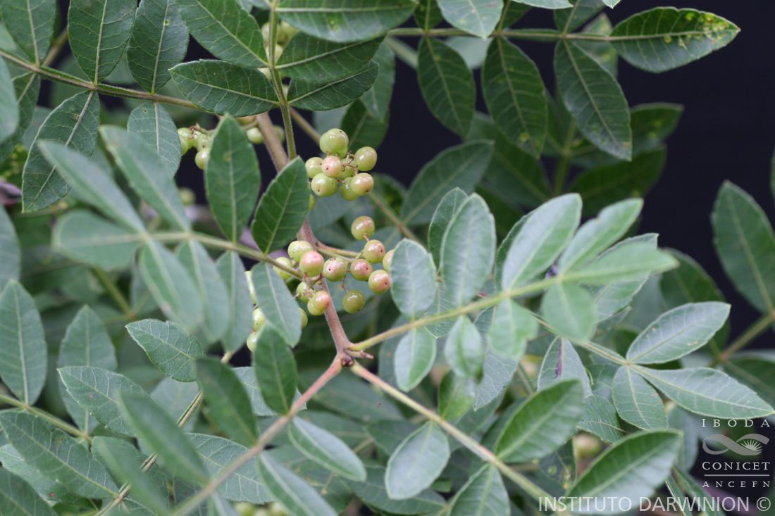 Observaciones: Nombres vernáculos y usos. “Aguaribái negro”, “aguará-ibá”, “aguará-mí-ibá”, “aroeira colorada”, “aroeira negra”, “cichita”, “cichita hu”, “corazón de bugre”,“yryvadjá”. Cantero et al. (2019) reportan que la corteza es empleada como colorante.
