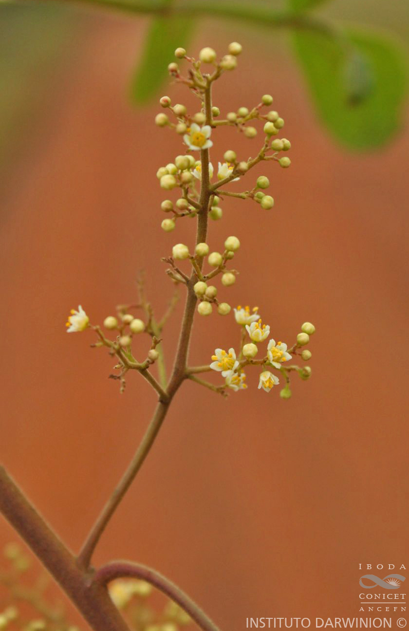 Observaciones: Nombres vernáculos y usos. “Aguaribái negro”, “aguará-ibá”, “aguará-mí-ibá”, “aroeira colorada”, “aroeira negra”, “cichita”, “cichita hu”, “corazón de bugre”,“yryvadjá”. Cantero et al. (2019) reportan que la corteza es empleada como colorante.