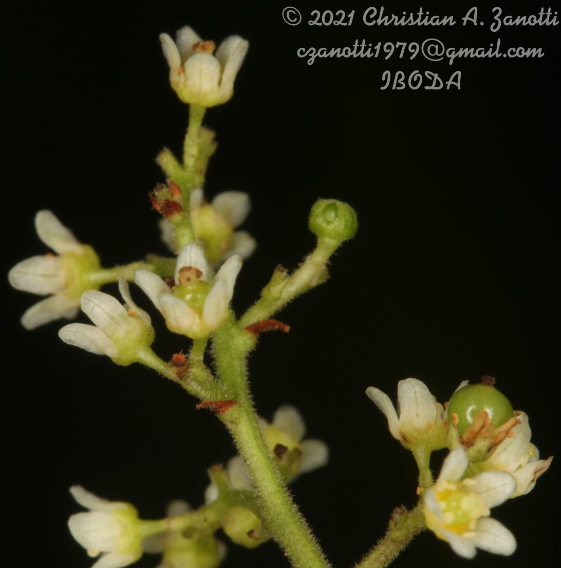 Observaciones: Nombres vernáculos y usos. “Aguaribái negro”, “aguará-ibá”, “aguará-mí-ibá”, “aroeira colorada”, “aroeira negra”, “cichita”, “cichita hu”, “corazón de bugre”,“yryvadjá”. Cantero et al. (2019) reportan que la corteza es empleada como colorante.