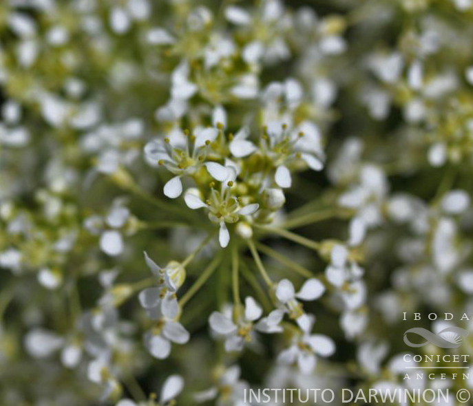 Hierbas perennes, rizomatosas, pubescentes, con tricomas usualmente simples y curvados, a veces glabras o glabrescentes al menos en la porción superior. Tallos de (0,8-)2-6,5(-9) cm de alto, erectos o decumbentes, profusamente ramificados en la porción superior. Hojas basales marchitas durante la antesis, pecioladas; láminas obovadas, espatuladas u ovadas, de (1,5-)3- 10(-15) × 1-4 cm, margen sinuado-dentado, ápice obtuso; hojas caulinares sésiles; láminas ovadas, elípticas, oblongas o lanceoladas, oblanceoladas u obovadas, de (1-)3-9(-15) × (0,5-)1- 2(-5) cm, pubescentes o glabras, la base sagitado-amplexicaule o auriculada, el ápice agudo o acuminado, margen dentado o entero. Racimos ligeramente alargados durante la fructificación; pedicelos fructíferos de 5-10(-15) mm de largo, divaricados o ascendentes, delgados. Sépalos oblongos, de 1,5-2,5 mm de largo, glabros, el margen blanco; pétalos blancos, obovados, de (2,5-)3-4(-4,5) × (1-)1,3-2(-2,2) mm, cortamente unguiculados, ápice redondeado; estambres 6; filamentos de 2-3 mm de largo; anteras ovoides, de 0,4-0,5 mm de largo. Frutos indehiscentes, ovoides o subglobosos, de (3,5-)4-6,2(-7) mm de diámetro, base redondeada, obtusa o truncada, ápice obtuso, sin escotadura apical; valvas ligera a fuertemente infladas, no carinadas, ligeramente reticuladas, glabras o cortamente pubescentes cuando ción; láminas obovado-lanceoladas, de-2,5-4 cm de largo, escasamente estrigulosas, margen serrado a dentado, ciliado; hojas caulinares inferiores de 2-4 cm × 3-7 mm, oblanceoladas, sésiles, auriculadas o no, subapicalmente 3-5-dentadas, glabras; hojas caulinares superiores lineares a linear-lanceoladas, subapicalmente 1-2-dentadas, glabras. Racimos laxos cuando maduros; raquis puberulento, con pelos retrorsos; pedicelos fructíferos arqueados, divaricados, ligeramente aplanados, de 3- 3,5 mm de largo, la cara adaxial puberulenta. Sépalos ovados, ca. 1 mm de largo, caducos, glabros o pubescentes, el margen blanco; pétalos blancos, filiformes, de 0,4-0,6 mm de largo; estambres 2, medianos; filamentos ca. 0,5 mm de largo; anteras de 0,2-0,3 mm de largo. Frutos dehiscentes, elipsoide-ovoides, de 3,5-4,2 × 2,4- 3 mm, glabros, lisos, estrechamente alados hacia el ápice, éste levemente emarginado, escotadura apical de 0,1-0,2 mm de largo; estilo muy breve, hasta de 0,1 mm de largo, inserto en la escotadura apical. Semillas castañas, ovoides, estrechamente aladas o marginadas, ca. 2 × 1,2 mm; cotiledones incumbentes. L
