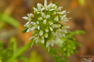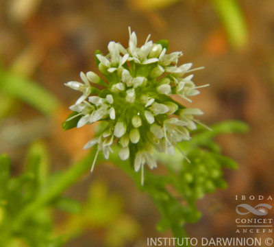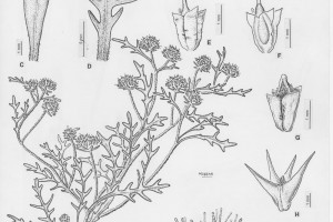 Terófitos caulescentes, laníferos, hasta de 10-15 cm de altura. Hojas laníferas, con la base atenuada en un peciolo; lámina lanceolada, pinnatisecta (raramente entera), lóbos lineares, con margen entero, ápice obtuso. Pedúnculos laníferos, indistinguibles de los entrenudos superiores del tallo. Brácteas involucrales casi libres, claramente diferenciadas de las hojas superiores distales, fusionadas en la base, notoriamente reducidas; brácteas lanceoladas a linear-lanceoladas, ápice mucronado. Receptáculo punctiforme, con brácteas espatuladas. Cefalodio con 8-10 grupos cimosos (hasta 4 flores). Flores tetrámeras. Cáliz polimórfico: 3-4 sépalos desiguales, de más de 1,5 mm, aciculares, con sección triangular, no lignificados en la antesis (flor terminal central y flor terminal de cada grupo cimoso); 4 sépalos desiguales, muy reducidos (0.5 mm) a triangulares, planos, no lignificados en la antesis (flores solitarias y flores de 2do y 3er orden en todos los grupos cimosos). Perianto de 2 – 2.5 mm de longitud. Hipanto de 0,75 mm, verde, tubuloso. Corola blanca, profundamente lobada, tubo reducido, de 0,5 mm, lóbulos 1,25 mm, oblongos, planos, ligeramente recurvados, ápice obtuso, no uncinado. Tubo estaminal de 3-4 veces la longitud de los filamentos (ca. 0,4 mm). Filamentos de 1/5 de la longitud de las anteras (ca. 0,1 mm). Anteras 0,7 mm, oblongas, tecas basalmente sagitadas, conective no apiculado. Glándulas nectaríferas estaminales. Ovario cilíndrico a lacrimiforme, 0.6 – 0.8 mm de longitud. Cipselas polimórficas, prismáticas, con el apículo terminal pubescente, a menudo estrechos en la base, con 4 carenas lisas, coronadas por sépalos compresos, reducidos a triangular-pungentes, de acuerdo con la posición de la flor que les dé origen y el polimorfismo de sépalos descriptos más arriba.