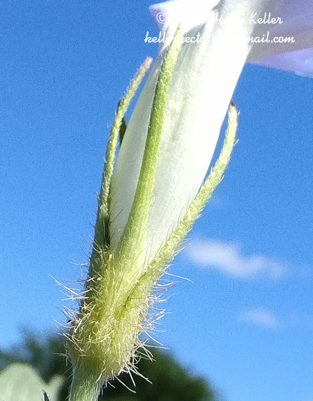 Hierba anual, con tallos volubles, a veces decumbentes, cilíndricos o angulosos, con pelos hirsutos retrorsos. Hojas trilobadas, pentalobadas y menos frecuentemente enteras, las pentalobadas con el lóbulo medio ovado, acuminado, contraído en la base y los laterales oblicuos, acuminados, base anchamente cordada, ambas caras con pubescencia adpresa variable. Inflorescencias cimosas 2-7-floras, con pedúnculos secundarios muy cortos, más raro flores solitarias. Flores con sépalos subiguales de 15-30 × 3-5 mm, los exteriores con porción inferior elíptica y la superior con un largo acumen linear a subespatulado, con abundantes pelos hirsutos de base ensanchada en la zona proximal, sépalos interiores lanceolados a lineares, con pelos dispuestos sólo en la línea media; corola infundibuliforme de 2-5 cm de largo, glabra, desde celeste hasta azul, con el tubo más claro; estambres de 12-45 mm de largo; ovario 3-locular, lóculos biovulados; estigma oscuramente 3-globoso. Cápsula globosa hasta de 15 mm de diámetro, con 3-6 semillas, rodeada por los sépalos que se amplían notablemente durante la maduración del fruto; tabiques delgados, hialinos, valvas 3. Semillas negras con pubescencia muy fina.