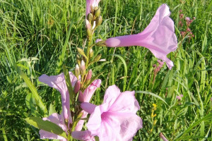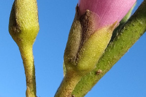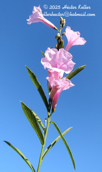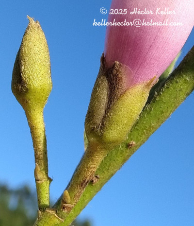 Plantas perennes, arbustivas o subarbustivas, hasta de 1,5 m de alto, con rizoma leñoso corto; ramas leñosas, fistulosas, con pelos simples esparcidos, antrorsos. Hojas cortamente pecioladas, láminas enteras, elípticas, lanceoladas, lineares, obovadas o subespatuladas, base cuneada o redondeada, haz con pelos esparcidos a glabra, envés glabro a pubescente especialmente sobre las nervaduras, nervaduras notables, formando un retículo. Inflorescencias paniculiformes formadas por flores solitarias o cimas 2-7-floras en las axilas de hojas bracteiformes; pedúnculos de 2-35 mm de largo, pubescentes; brácteas florales ovado-lanceoladas, de 6 mm de largo, caducas; botones ovoideos con corola densamente serícea. Flores con cáliz con 5 glándulas en su base, los sépalos exteriores ovados a elípticos, agudos, de 6-9 × 4-7 mm, mucronados, dorso pubescente, los interiores ovados a anchamente elípticos, obtusos, ápice truncado, mucronados de 5-8,5 × 5-7 mm, dorso pubescente y bordes glabros; corola infundibuliforme de 3,5-5,5 cm de largo, el limbo ca. 5 cm de diámetro, rosada con el tubo purpúreo, áreas mesopétalas exteriormente seríceas; estambres de 16-30 mm de largo; estilo de 15-22 mm. Cápsula ovoidea a elipsoidal, glabra, de 8-11 × 7-8 mm, 2-locular. Semillas negras o pardas, con pelos largos ferrugíneos en los bordes.