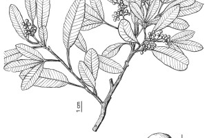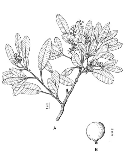 Árboles hasta de 8(-15) m de alto; ramas pardo-grisáceas, glabras o escasamente pubescentes. Hojas simples, muy raramente pinnadas con 2-3 folíolos; pecíolos de 0,3-1,5 cm de largo, en ocasiones subsésiles; lámina oblonga u obovada, de 2-8 × 0,7-3 cm, ápice agudo, emarginado o mucronado, raro truncado, base decurrente, margen revoluto, entero u ondulado, textura coriácea a subcoriacea, glabra en ambas caras. Inflorescencias de 1,5-5(-7) cm de largo, terminales. Flores con pedicelos de 1-2 mm de largo. Flores estaminadas con lóbulos del cáliz triangulares, de 0,5-0,7 mm de largo, glabros; corola con pétalos elípticos u ovados, de 1,3-1,4 mm de largo; anteras elipsoideas. Flores pistiladas con ovario globoso hasta de 1,5 mm de largo. Drupa de 0,4-0,7 cm de diámetro; pedicelo hasta de 4 mm de largo.