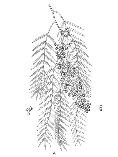 Árboles hasta de 10 m de alto, diclino-monoicos, en ocasiones con algunas flores perfectas; corteza pardo-oscura a grisácea, áspera y escamosa, que con el paso de los años se agrieta y exfolia en placas longitudinales; ramas inermes, péndulas, rojizas y glabras. Hojas imparipinnadas, raro paripinnadas por aborto del folíolo terminal; pecíolo de 3-7 cm de largo, no alado; raquis subalado; folíolos en (8-)10-15(-22) pares, opuestos, en ocasiones subopuestos o alternos, sésiles; lámina lanceolada a linear, en ocasiones falcada, de 2-8,5 × 0,3-0,8 cm, ápice más o menos redondeado y acuminado, base obtusa, margen entero, en ocasiones con algunos dientes inconspicuos en ángulo ca. 90° con respecto al margen, los folíolos de las hojas proximales a veces con margen aserrado parcial o casi total, glabros en ambas caras,subcoriáceos, venación conspicua; raquis subalado. Inflorescencias en panículas multifloras y laxas, péndulas, terminales y axilares, de 6-20 cm de largo; raquis glabro y brácteas isomorfas. Flores 5-meras; pedicelos ca. 0,5 mm de largo, notoriamente articulados; cáliz con lóbulos de 0,6-1 mm de largo; pétalos obovados u oblongos, de 1,5-2 mm de largo, glabros, blancos o blanco-amarillentos. Flores pistiladas con gineceo ca. 1,5 mm de largo. Drupa de 0,4-0,5 cm de diámetro, glabra, rosado-lilacina.