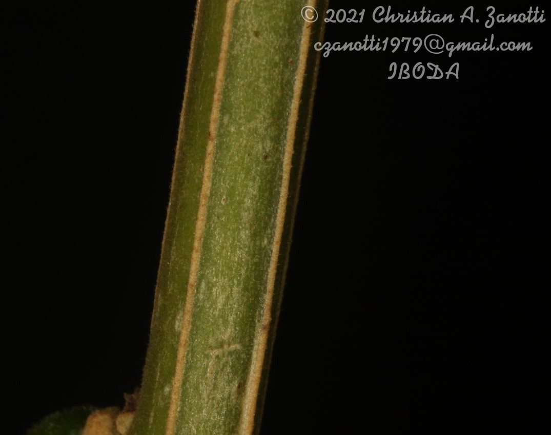 Arbustos de 0,5-1,5 m de alto, a veces apoyantes; tallos 3-4- aristados, los jóvenes con tricomas simples o ramificados. Hojas solitarias o, a veces, geminadas, con tricomas dispersos en el epifilo; pecíolos de 1-2,5(-4) cm; láminas elípticas u ovadas, de 6,5-9(-14) × 3,5-5(-7,5) cm, base atenuada, ápice acuminado. Inflorescencias axilares, de 3-7 flores. Flores con pedicelos pubescentes, de 1,2-1,6 cm; cáliz de 3,2-4 mm, con 10 (raro 5) apéndices lineares, agudos, desiguales, muy breves o hasta de 5,2 mm de largo, con tricomas simples o ramificados; corola violácea, de 13,5-18 mm; androceo heterodínamo, filamentos pubescentes, 3 más largos, de 2-3 mm, los otros 2 más cortos, de 0,8-1,3 mm, con una giba en su base, anteras de 3-4 mm; ovario de 1,8-2,3 mm, estilo de 4-5,5 mm, estigma discoide. Baya amarilla, globoso-comprimida, de 2-3,5 cm de diámetro; pericarpo sin proliferaciones hacia los lóculos y con más de 20 esclerosomas; semillas de 3,5 × 3-3,3 mm.