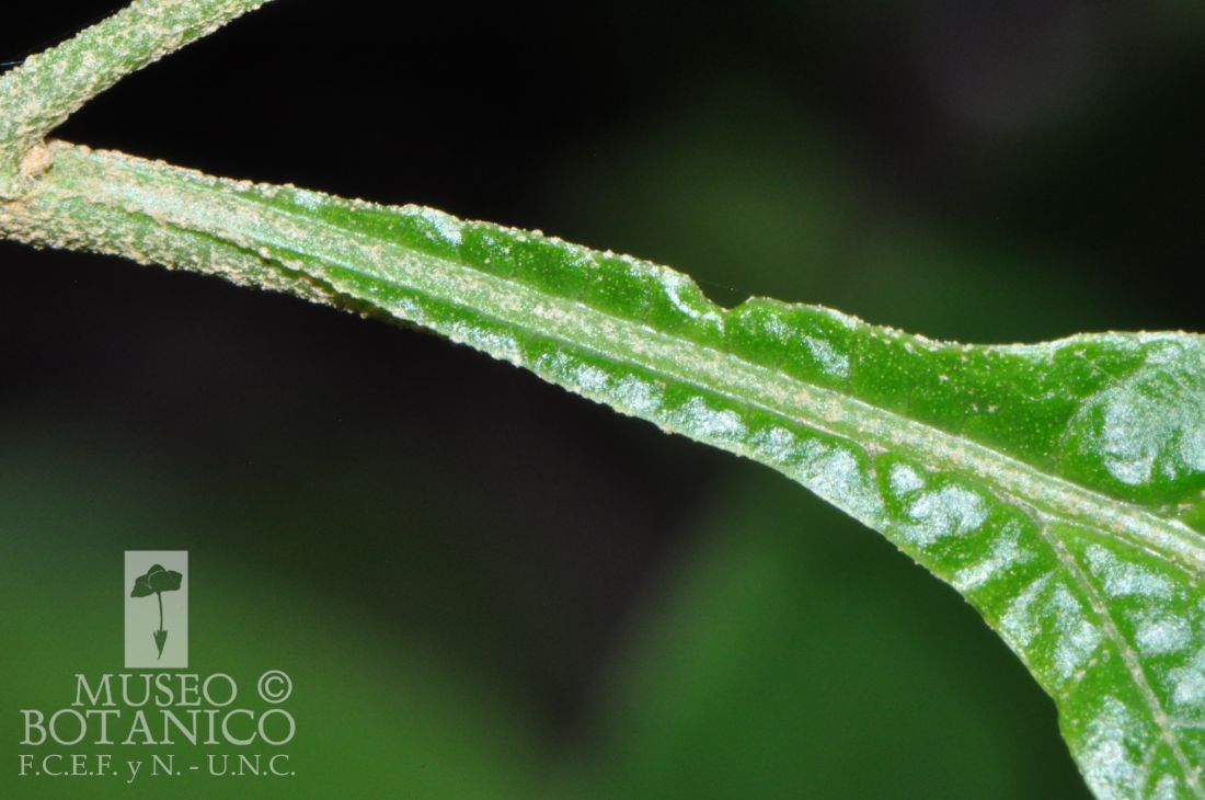 Arbustos o arbolitos de 1-10 m de alto; ramas y hojas jóvenes con pubescencia aracnoidea densa, que confieren textura afelpada, prontamente caducos; corteza de las ramas viejas castaño grisácea, con lenticelas blancuzcas. Unidades simpodiales 2-foliadas, geminadas. Hojas maduras con láminas elípticas, con el ancho máximo en la zona media, ápice y base agudos; epifilo glabro, generalmente abullonado, a veces con algunos tricomas aracnoideos en el nervio medio; hipofilo glabro o con algunos tricomas en los nervios principales; hojas mayores con pecíolos de (7-)10-15(-20) mm, láminas de 4-18(-30) × 2-11(-28) cm, nervios laterales 10-14 pares impresos en el hipofilo; hojas menores sólo difiriendo en tamaño, pecíolos de 3-10 mm, láminas de 3-9 × 1,5-5 cm. Inflorescencia opuesta a las hojas, (2-)5- 7(-15)-flora, glabra o con tricomas aracnoideos esparcidos, pedúnculo casi nulo. Pedicelos de 15-25 mm, delgados; cicatrices de los pedicelos muy próximas entre sí; cáliz acampanado, tubo de 1-2 mm, lóbulos anchamente deltoides, de 1-2 mm, obtusos, apiculados, glabros u ocasionalmente con algunos tricomas dendríticos; corola partida casi hasta la base, de (12-)15-16 (-22) mm de diámetro, blanca o blanco-verdosa, lóbulos anchamente lanceolados de 6-8 × 3-4 mm, planos en la antesis, con puntas y márgenes papilosos, externamente pilosos; filamentos con su porción libre ca. 0,5 mm, porción fusionada de 0,5-1 mm, anteras de 4-6 × 1-2 mm, dehiscentes por poros apicales en forma de gota; ovario glabro, estilo de 6-10 mm, glabro o con algunos tricomas, estigma levemente clavado, papiloso. Baya esférica u ovoide, de (8-)10-15 mm de diámetro y hasta 20 mm de largo, verde-grisácea en la madurez; pedicelo fructífero leñoso, reflexo, hasta de 2,5 cm; semillas reniformes, de 2,5-3,5 mm, castañas, finamente foveoladas.