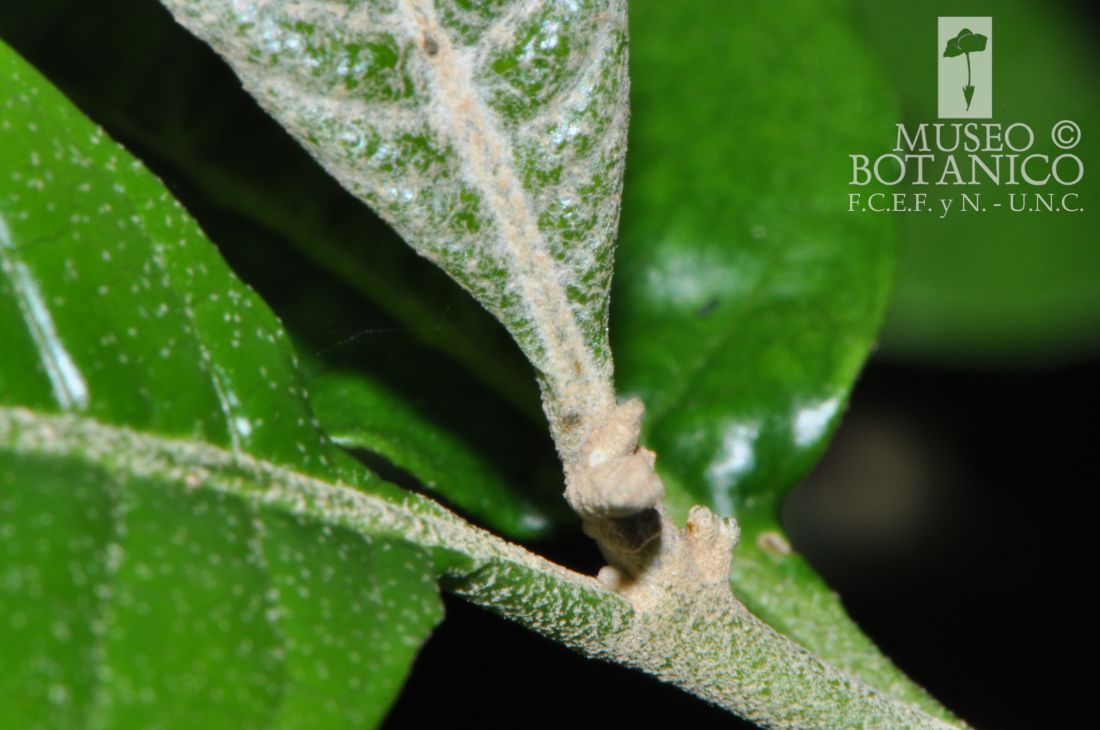 Arbustos o arbolitos de 1-10 m de alto; ramas y hojas jóvenes con pubescencia aracnoidea densa, que confieren textura afelpada, prontamente caducos; corteza de las ramas viejas castaño grisácea, con lenticelas blancuzcas. Unidades simpodiales 2-foliadas, geminadas. Hojas maduras con láminas elípticas, con el ancho máximo en la zona media, ápice y base agudos; epifilo glabro, generalmente abullonado, a veces con algunos tricomas aracnoideos en el nervio medio; hipofilo glabro o con algunos tricomas en los nervios principales; hojas mayores con pecíolos de (7-)10-15(-20) mm, láminas de 4-18(-30) × 2-11(-28) cm, nervios laterales 10-14 pares impresos en el hipofilo; hojas menores sólo difiriendo en tamaño, pecíolos de 3-10 mm, láminas de 3-9 × 1,5-5 cm. Inflorescencia opuesta a las hojas, (2-)5- 7(-15)-flora, glabra o con tricomas aracnoideos esparcidos, pedúnculo casi nulo. Pedicelos de 15-25 mm, delgados; cicatrices de los pedicelos muy próximas entre sí; cáliz acampanado, tubo de 1-2 mm, lóbulos anchamente deltoides, de 1-2 mm, obtusos, apiculados, glabros u ocasionalmente con algunos tricomas dendríticos; corola partida casi hasta la base, de (12-)15-16 (-22) mm de diámetro, blanca o blanco-verdosa, lóbulos anchamente lanceolados de 6-8 × 3-4 mm, planos en la antesis, con puntas y márgenes papilosos, externamente pilosos; filamentos con su porción libre ca. 0,5 mm, porción fusionada de 0,5-1 mm, anteras de 4-6 × 1-2 mm, dehiscentes por poros apicales en forma de gota; ovario glabro, estilo de 6-10 mm, glabro o con algunos tricomas, estigma levemente clavado, papiloso. Baya esférica u ovoide, de (8-)10-15 mm de diámetro y hasta 20 mm de largo, verde-grisácea en la madurez; pedicelo fructífero leñoso, reflexo, hasta de 2,5 cm; semillas reniformes, de 2,5-3,5 mm, castañas, finamente foveoladas.
