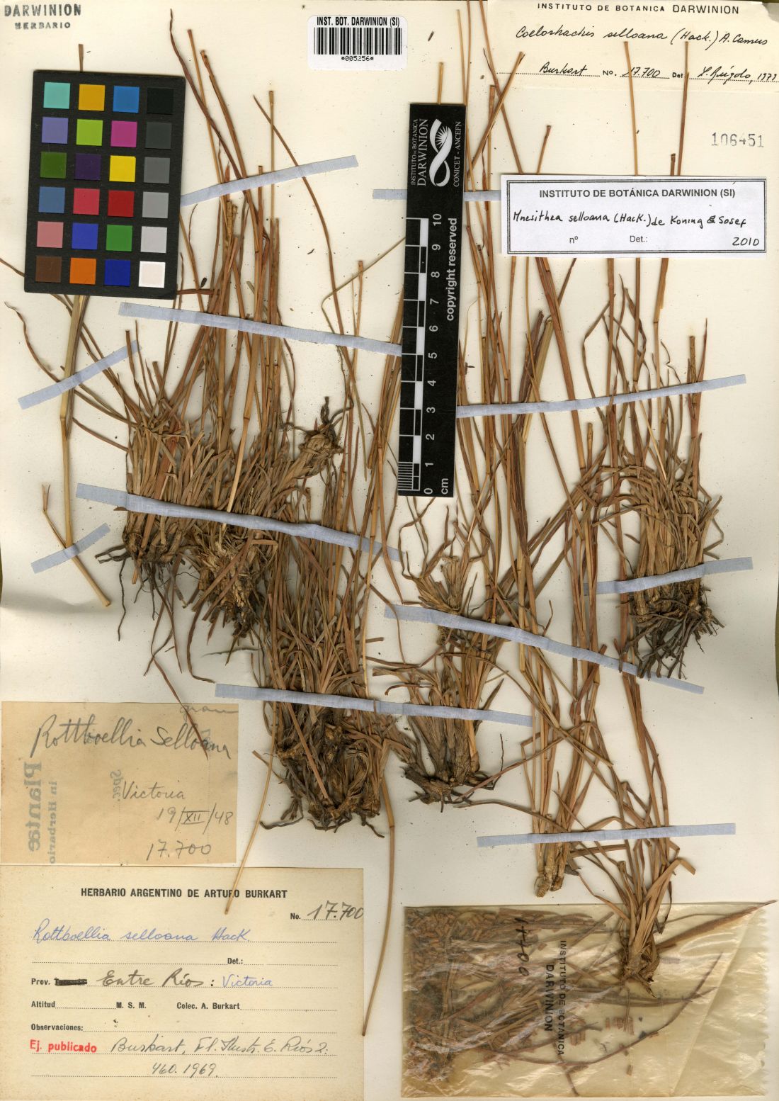 Hierbas perennes de 10-75 cm de alto, rizomatosas; innovaciones extravaginales; cañas comprimidas, 2-8 nodes; vainas carinadas, las caulinares más cortas que los entrenudos; láminas, lineares, planas o conduplicadas, de 5-35 cm x 2-6 mm. Inflorescencia formada por racimos espiciformes cilíndricos o subcilíndricos, simples, terminales y axilares, rectos o levemente curvos, los terminales exertos a la madurez, los axilares 1-5, subincluidos en la hoja tectriz; artejos del raquis huecos, de 4-5,5 mm de largo, dilatados hacia la extremidad distal. Espiguilla sésil de longitud aproximada al artejo, comprimida dorsiventralmente; gluma inferior de 4 x 2-2,5 mm, coriácea, 2-aquillada, quilla alada hacia el extremo distal, dorso algo convexo, con cavidades dispuestas longitudinalmente en los espacios internervales; gluma superior 3-nervia, navicular; lemma estéril, lanceolada, papirácea; lemma fértil 1-carinada, hialina; pálea hialina. Espiguilla pedicelada de 1-1,5 mm de largo, estéril, pedicelo comprimido, recto o algo falcado, poco menor que el artejo.