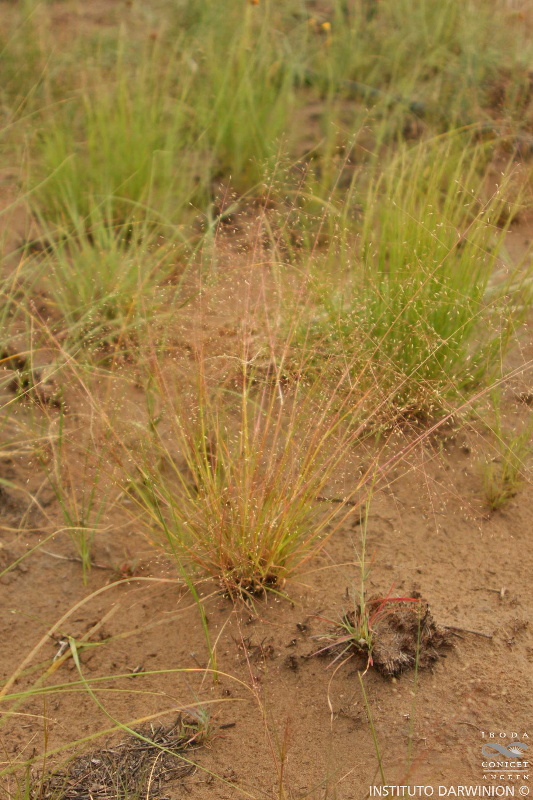 Plantas perennes, cespitosas, con innovaciones en los nudos basales; cañas de 30-70 cm de alto, erectas, algunas veces geniculadas en las porciones basales, glabras y algo brillantes debajo de los nudos; vainas ½-? del largo de los entrenudos superiores, pilosas en su porción distal y ciliadas distalmente; lígulas de 0,2-0,3 mm de largo, ciliadas; láminas de (5-)8-22 cm x 1-2 mm, involutas, raramente planas, generalmente glabras en ambas caras, escabriúsculas hacia el ápice y a lo largo de los márgenes, algunas veces con tricomas dispersos a lo largo de los márgenes, los tricomas hasta de 7 mm de largo. Inflorescencias de 16-28 x 10-21 cm, abiertas, ovadas, ramificaciones primarias ascendentes, de 6-15 cm de largo, divergentes en ángulos hasta de 100° con relación al raquis, ramificaciones escabriúsculas, sin espiguillas en su porción proximal; ramificaciones secundarias compuestas de espiguillas superpuestas; pulvínulos ciliados, los tricomas hasta de 7 mm de largo; pedicelos de 1,4-5(-7) mm de largo, erectos, rectos. Espiguillas de 2-4,5(-5) x 0,5-1,1 mm, 2-7-floras, estrechamente lanceoladas, plomizo claro a rojizo-purpúreas; desarticulación acrópeta, páleas y raquilla persistentes; glumas de 0,6-1,4 mm de largo, subiguales, ampliamente ovadas a estrechamente lanceoladas, hialinas, carinadas, escabriúsculas a lo largo de las carinas, algunas veces rojizas a purpúreas; gluma inferior de 0,6-1 mm de largo; gluma superior de 1,1-1,4 mm de largo, generalmente más ancha que la gluma inferior; lemma de 1,2-1,8 mm de largo, anchamente ovada, membranácea, márgenes distales hialinas, nervios laterales oscuros a escasamente evidentes, carinada, escabriúscula a lo largo de las carinas cerca de su porción distal, ápice agudo; pálea de 1,1-1,7 mm de largo, membranácea a parcialmente hialina, escabriúscula a lo largo de las carinas, ápice obtuso; estambres 3, anteras de 0,2-0,7 mm de largo, rojizas a purpúreas; cariopsis de 0,5-0,6 mm de largo, obovoidea a ligeramente prismática, terete a suavemente aplanada lateralmente, con un débil surco ventral, estriada y reticulada, generalmente opaca, irregularmente obovada a triangular en corte transversal, rojizo-castaña a blanquecina.