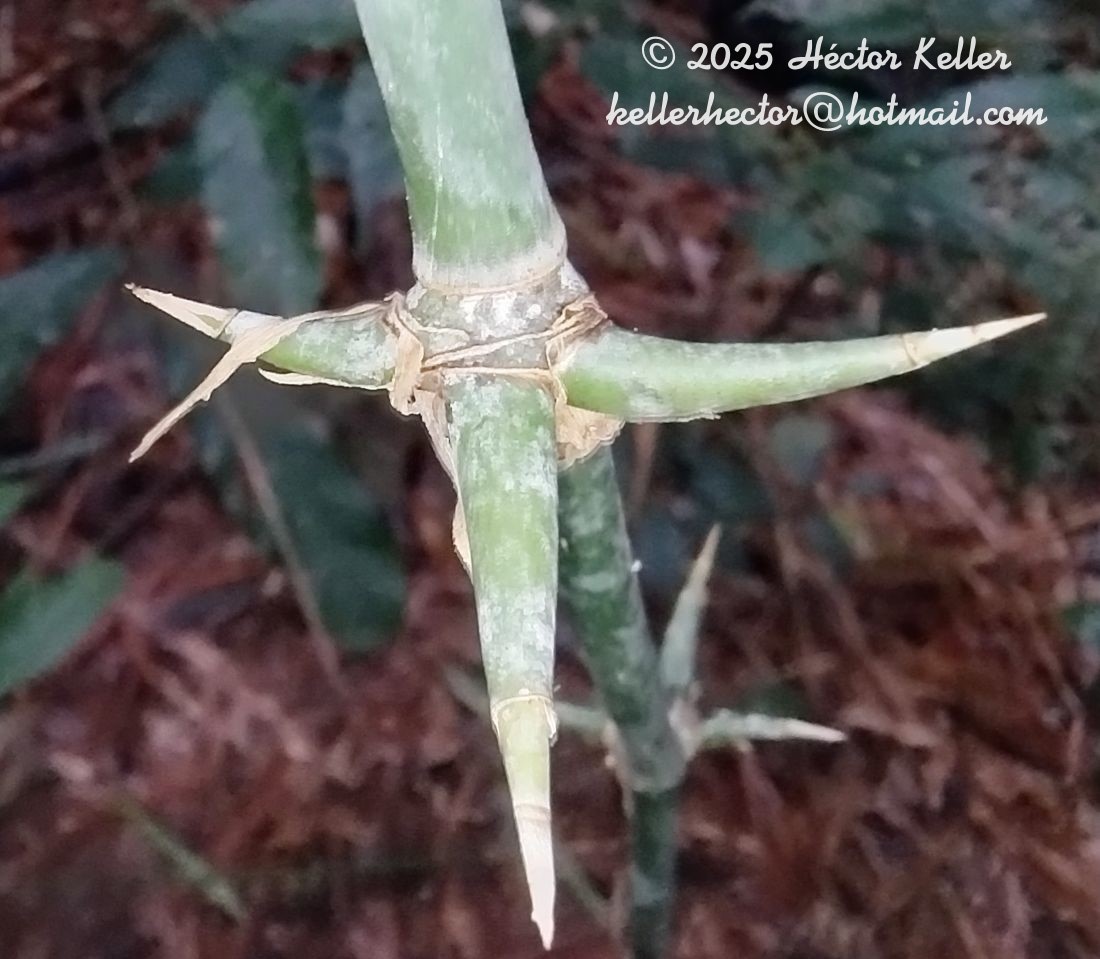 Observaciones: La floración masiva y posterior muerte de matas de G. chacoensis se inició en 2008 y continúa hasta la actualidad en las provincias de Misiones, Corrientes y Chaco y también en las ciudades de San Miguel de Tucumán y Buenos Aires, donde se halla cultivada, habiendo transcurrido aproximadamente 28 años de crecimiento vegetativo hasta el inicio de la floración (Vega & Cámara Hernández, 2008). Una vez iniciada la floración, ésta se prolonga ininterrumpidamente por al menos 3 años (Londoño & Peterson, 1992).