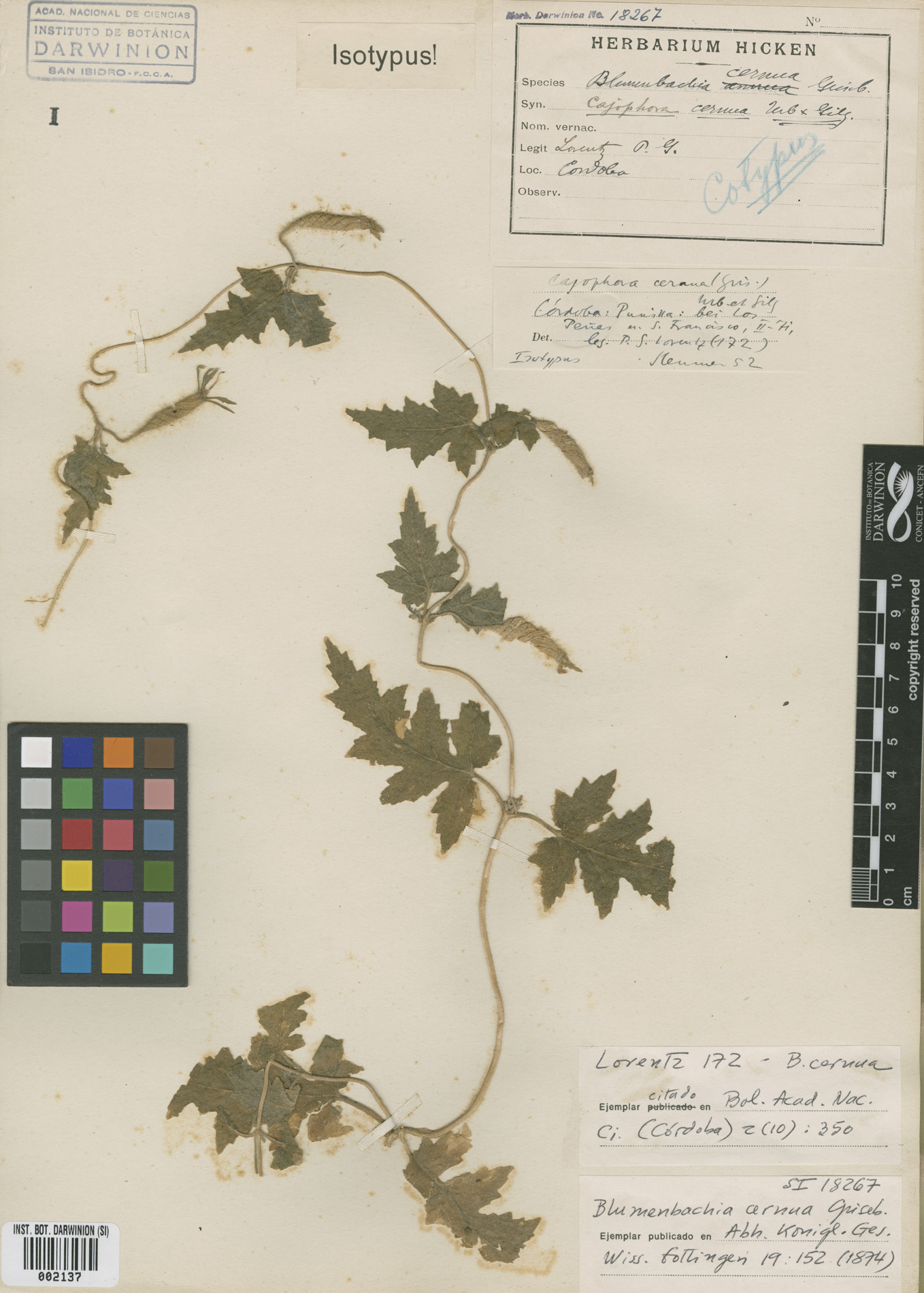 Tipo de Blumenbachia cernua Griseb.