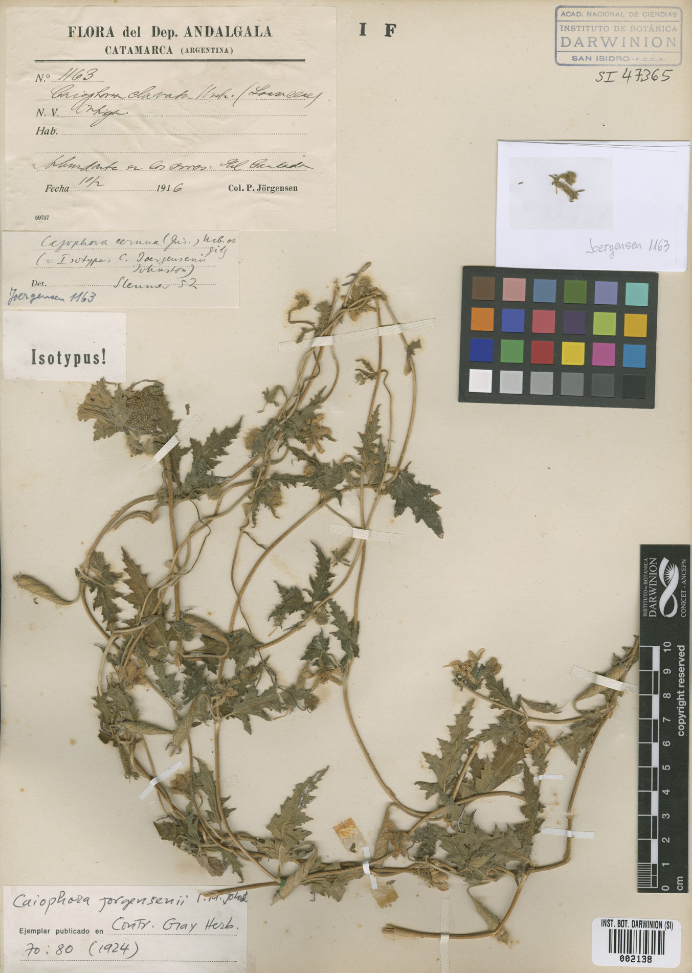 Tipo de Caiophora jorgensenii I.M. Johnst.