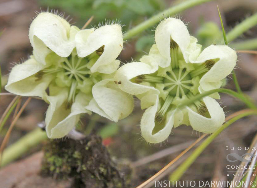 Hierbas volubles a veces decumbentes, de aprox. 0,50 m de alto, urticantes. Tallos cubiertos de setas largas y cortas, antrorsas, pelos cortos gloquidiados y escábridos; corteza amarillenta. Hojas con pecíolo hasta de 6 cm; lámina ovado-lanceolada, pinnatisecta a bipinnatisecta, hasta de 11 x 5,5 cm, base generalmente truncada, ápice agudo; segmentos ovado-triangulares, los basales a menudo libres, agudos; margen irregularmente dentado, dientes menores intercalados entre otros mayores; haz laxamente cubierto por setas largas antrorsas y pelos cortos gloquidiados y escábridos, envés provisto de pelos gloquidiados y setas largas. Inflorescencias laxas, monocasios o dicasios asimétricos. Flores horizontales a deflexas, 5-meras. Pedicelos rígidos, hasta de 21 cm. Receptáculo obcónico, de 5-6 mm; densamente cubierto de pelos cortos gloquidiados y setas largas dispersas. Cáliz deflexo; sépalos lanceolados a ovado-lanceolados, pinnatisectos, de 4-5 x 2 mm; pubescencia similar a la del receptáculo. Corola cortamente acampanada; pétalos obovados, profundamente cimbiformes, alados hacia la base, de 10-12 x 7-8 mm, 3-4 mm de profundidad, alas minuta e irregularmente lobuladas; exteriormente cubiertos de pelos gloquidiados y setas dispersas, interiormente glabros; amarillos, más raramente blanco amarillento. Escamas nectaríferas cimbiformes, semilunares en vista lateral, dorsalmente oblongas, 3-costadas, ca. 4 x 2 mm; color amarillo o amarillo verdoso; exteriormente pilosas, interior glabrescente; ápice emarginado, ligeramente engrosado, no diferenciado; cuello subrectangular; apéndices dorsales generalmente 2 desarrollados y el central reducido o ausente, insertos en el 1/3 superior de la escama, espatulados, ca. 2,5 mm, amarillentos o blanquecinos. Estaminadios de 6-7 mm; blanco-amarillentos; densamente papilosos; lengüeta basal oblonga, membranácea, pilosa. Cápsula deflexa, brevemente obcónica a claviforme, recta, de 20-25 x 10 mm en la parte superior, glabrescente.