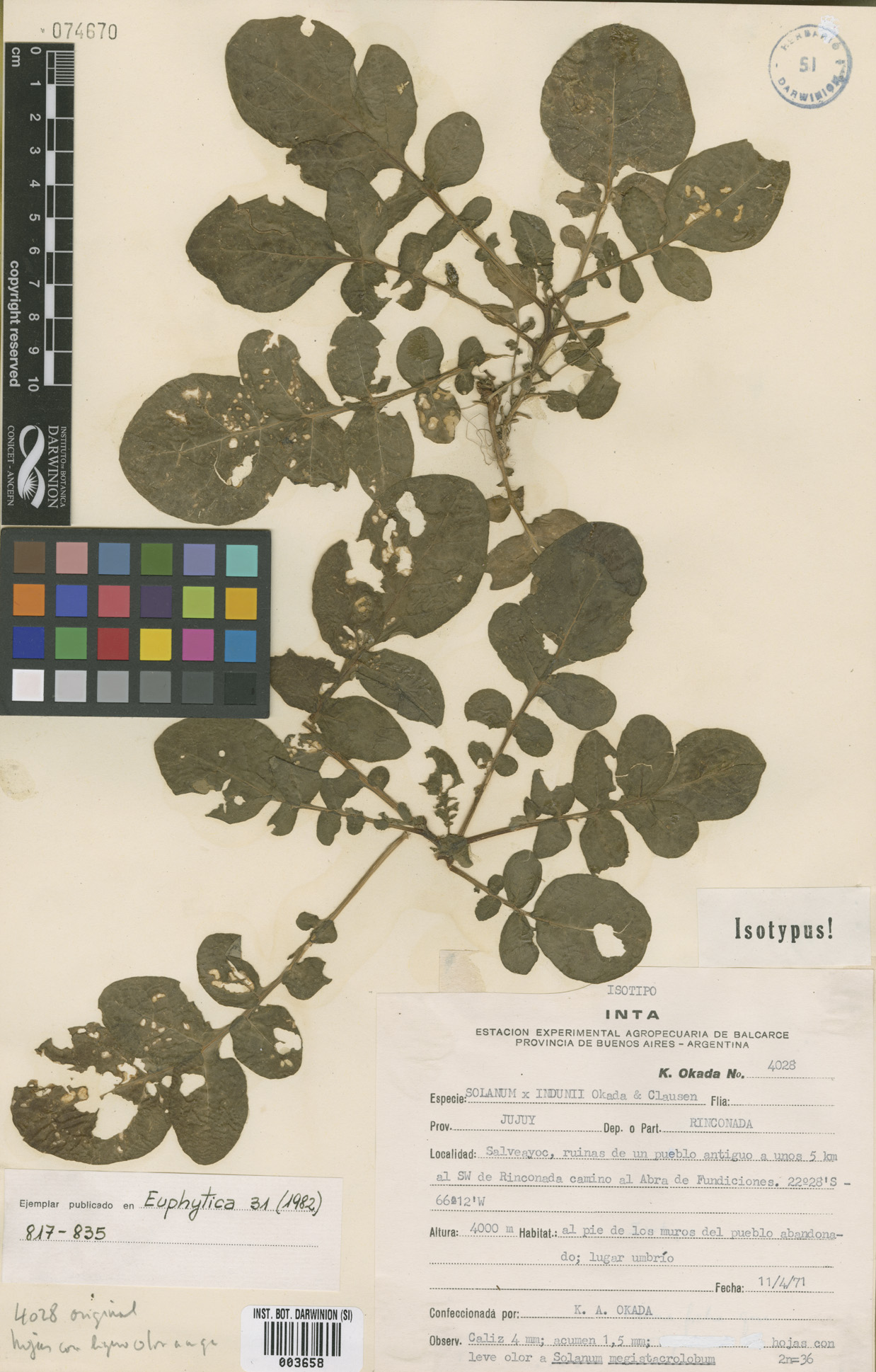 Tipo de Solanum x indunii K.A. Okada & A.M. Clausen