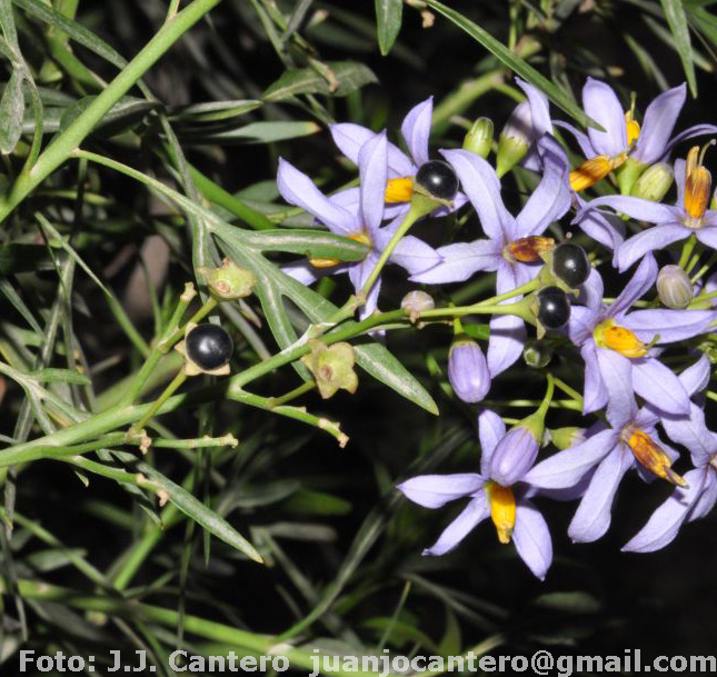 Observaciones: Nombres vulgares y uso. «Jazmín», «jazmín de Córdoba», «jazmín de cielo», «yerba vaca». Por lo común cultivada por sus vistosas y abundantes flores purpúreas. A menudo cultivada o escapada de cultivo; su real distribución natural no se conoce con certeza; los especímenes de Bolivia se cree provienen de cultivo, por lo que probablemente esta especie sea un endemismo de la Argentina. Solanum angustifidum se distingue entre los miembros del grupo Dulcamaroide por tener hojas siempre pinnatífidas que se dividen casi hasta la nervadura central en, generalmente, tres pares de folíolos lineares. Si bien normalmente es una planta arbustiva, los pecíolos en las ramas terminales son alargados y se enroscan alrededor de otras plantas. Las citas de esta especie para Jujuy (Barboza et al., 2008) corresponden a materiales cultivados