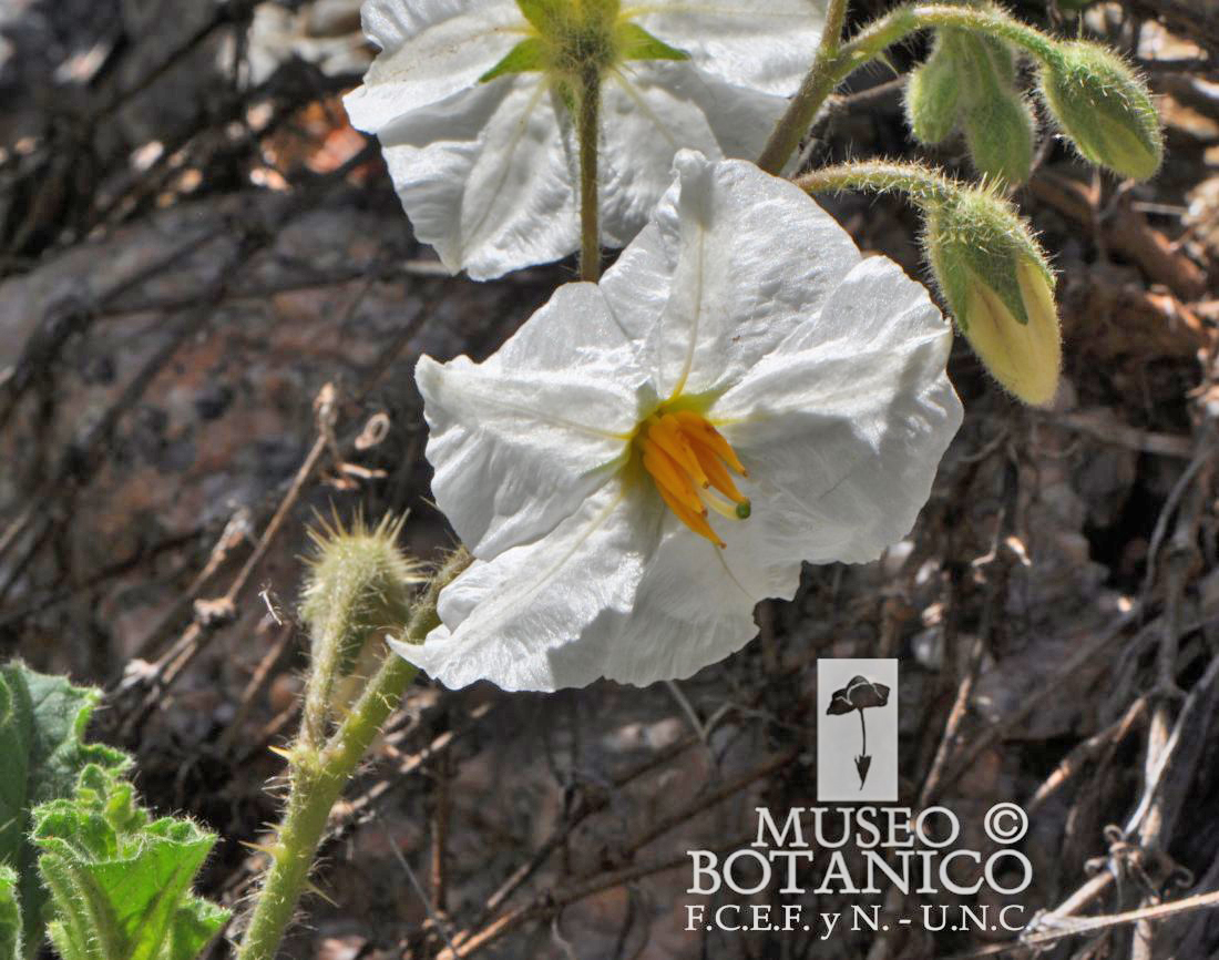 Hierbas perennes, andromonoicas, con raíces gemíferas y tuberosidades; tallos rastreros, decumbentes, o más o menos erectos, cubiertos por tricomas estrellados sésiles o cortamente estipitados, con 4 rayos laterales y uno central mayor, 1-2- ó pluricelular, y por acúleos subaciculares y tricomas glandulares esparcidos. Pecíolos con acúleos y tricomas como los del tallo; láminas orbiculares a elípticas, base cordada, generalmente desigual, ápice obtuso, aculeadas en ambas caras, desde sinuadas a profundamente lobadas, lóbulos anchos y redondeados, sinuados; epifilo con tricomas estrellados sésiles o cortamente estipitados, con 4 rayos laterales y uno central algo mayor (1-) 2- o pluricelular, más tricomas glandulares cortos y esparcidos; hipofilo con tricomas más densos, estrellados, cortamente estipitados, con 4 rayos laterales y uno central igual o algo mayor. Inflorescencia pedunculada, no ramificada, con 2-5 flores perfectas y 0-3 flores estaminadas, pedúnculos y pedicelos con tricomas y acúleos como los del tallo. Cáliz inerme o con acúleos aciculares y tricomas estrellados, lóbulos triangulares; corola rotácea, hasta de 4 cm de diámetro, lilacina; anteras iguales, de 6-8 mm, amarillas. Baya algo deprimida, de 1,9 × 2,4 mm, amarilla, encerrada por el cáliz hasta la mitad o menos, pericarpo carnoso; semillas unas 250 por fruto, lenticulares, de 3-4 mm, amarillas, lisas.