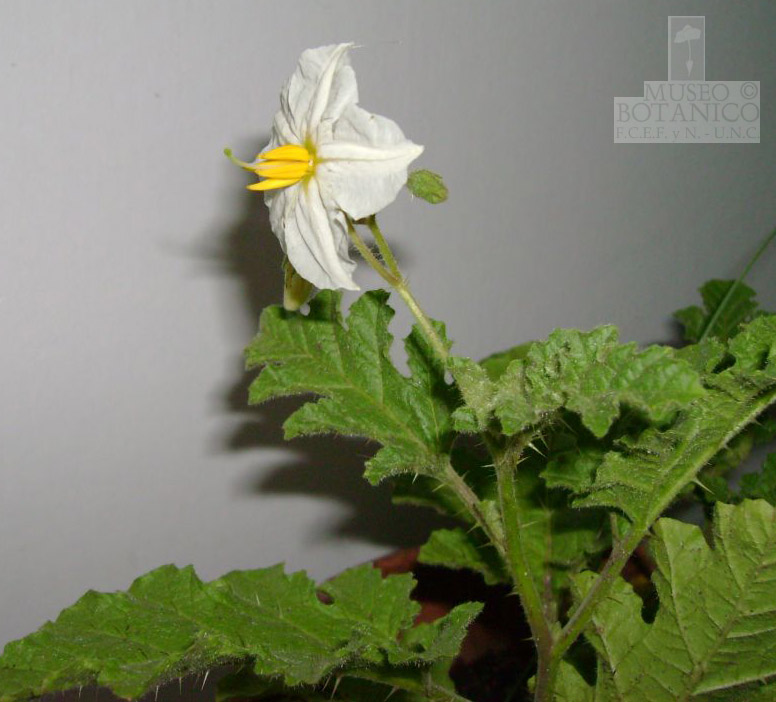 Hierbas perennes, andromonoicas, con raíces gemíferas y tuberosidades; tallos rastreros, decumbentes, o más o menos erectos, cubiertos por tricomas estrellados sésiles o cortamente estipitados, con 4 rayos laterales y uno central mayor, 1-2- ó pluricelular, y por acúleos subaciculares y tricomas glandulares esparcidos. Pecíolos con acúleos y tricomas como los del tallo; láminas orbiculares a elípticas, base cordada, generalmente desigual, ápice obtuso, aculeadas en ambas caras, desde sinuadas a profundamente lobadas, lóbulos anchos y redondeados, sinuados; epifilo con tricomas estrellados sésiles o cortamente estipitados, con 4 rayos laterales y uno central algo mayor (1-) 2- o pluricelular, más tricomas glandulares cortos y esparcidos; hipofilo con tricomas más densos, estrellados, cortamente estipitados, con 4 rayos laterales y uno central igual o algo mayor. Inflorescencia pedunculada, no ramificada, con 2-5 flores perfectas y 0-3 flores estaminadas, pedúnculos y pedicelos con tricomas y acúleos como los del tallo. Cáliz inerme o con acúleos aciculares y tricomas estrellados, lóbulos triangulares; corola rotácea, hasta de 4 cm de diámetro, lilacina; anteras iguales, de 6-8 mm, amarillas. Baya algo deprimida, de 1,9 × 2,4 mm, amarilla, encerrada por el cáliz hasta la mitad o menos, pericarpo carnoso; semillas unas 250 por fruto, lenticulares, de 3-4 mm, amarillas, lisas.