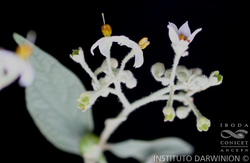 Arbustos hasta de 3 m de alto; tallos con tricomas ramificados y estrellados, sésiles o con pie corto a largo. Hojas desigualmente geminadas; pecíolos de 3-15 mm; láminas elípticas, las más grandes de 3,3-11,5 × 1-5,2 cm, las pequeñas de 1,2-3,9 × 0,6-2,3 cm, base cuneada a atenuada, ápice largamente acuminado, con indumento igual que el del tallo, discoloras; epifilo verde pardo a verde oliva; hipofilo verde oliva claro a verde-amarillento; hojas axilares ausentes. Inflorescencia axilar, ramificada varias veces, pluriflora, con 15-40 flores; pedúnculos de 1,2-2,2 cm. Pedicelos de 5-12 mm; cáliz de 2,5-3(-4) mm, partido hasta la mitad de su longitud, en el exterior con tricomas ramificados y glandulares, en el interior sólo con tricomas glandulares, lóbulos ovados, ca. 1,25 mm, obtusos; corola pentagonal, de 12-18 mm de diámetro, 12-15 mm de largo, excediendo la longitud del cáliz, blanca; filamentos de 0,8-1 mm, anteras ca. 3,5 mm; ovario glabro, estilo de 4,5 mm, superando la longitud del androceo. Baya de 5-10 mm, negruzca, morada, glabra; semillas de 2 × 1,75 mm.