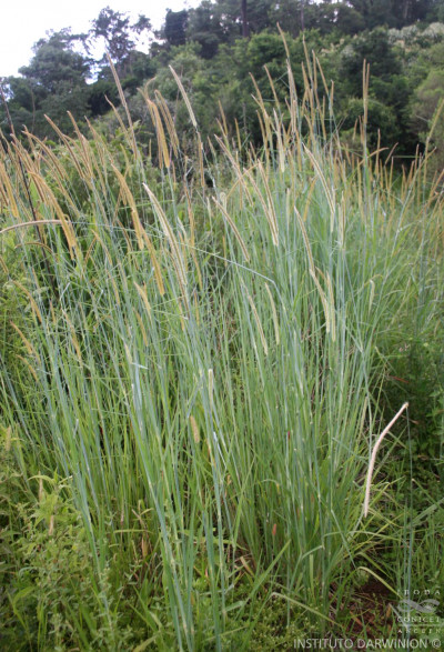 Especie africana, introducida como forrajera en el Continente Americano, de hábitat variado. Florece desde noviembre hasta marzo.