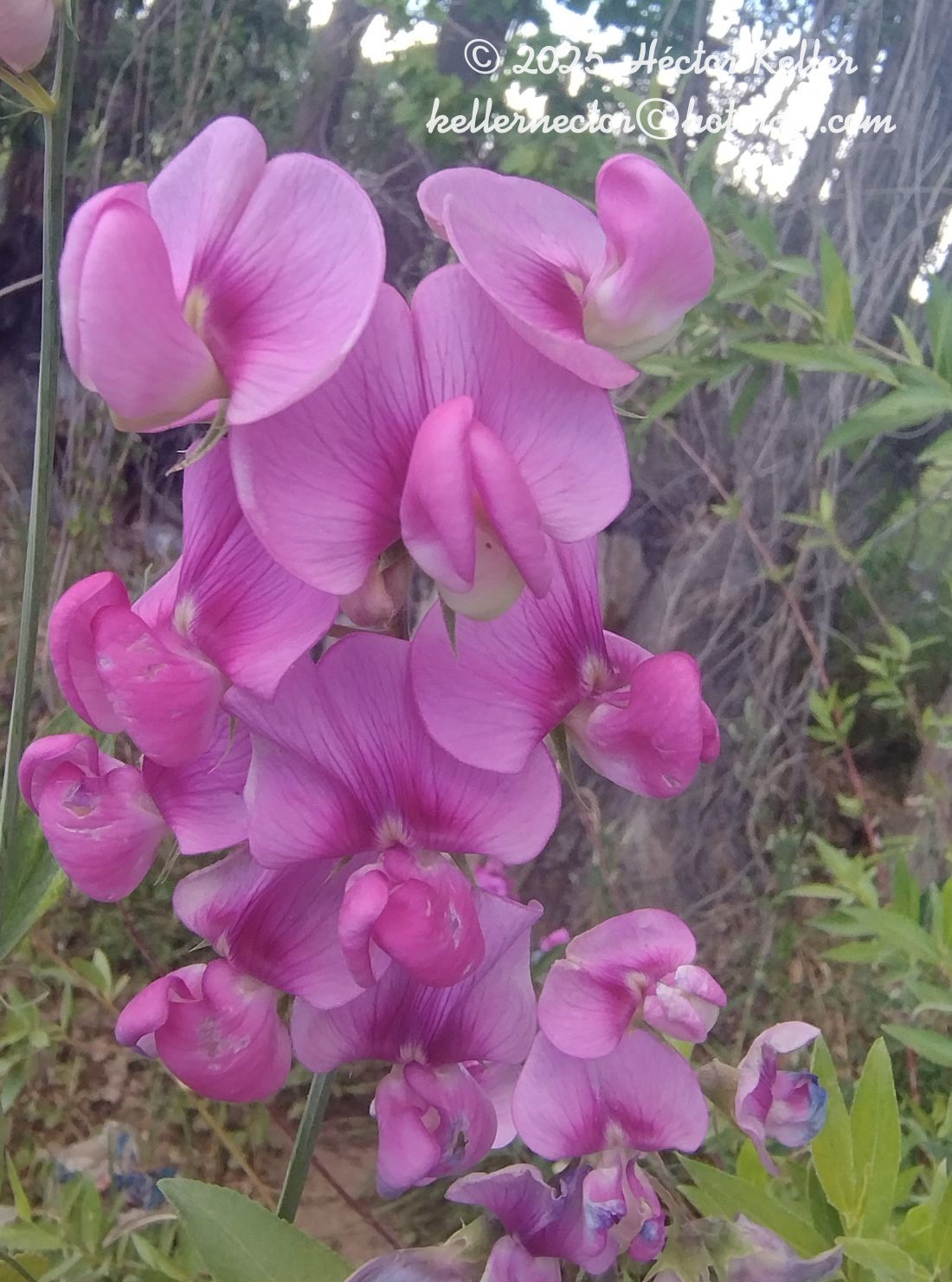 Planta de 0,50-2 m alt., perenne, trepadora o decumbente, glabra, no ennegrecida al secar. Tallos y pecíolos con alas muy desarrolladas, hasta 5 mm. Hojas 1-yugadas; estí¬pulas de 15-40 x 5-12 mm, semisagitadas; folíolos de 40-90 x 5-25 mm, estrecha a an¬chamente elípticos, a veces estrechamente ovados, mucronados; zarcillos hasta 9-fidos. Racimos 4-15-floros, pedúnculos hasta 20 cm. Flores de 20-30 mm, generalmente roji¬zas, a veces blancas. Legumbre de 50-110 mm, castaña, comprimida, glabra. Semillas nu¬merosas, globosas, rugosas, negruzcas.