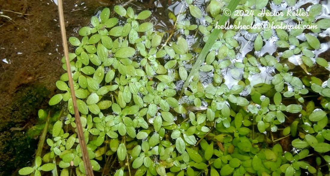 Hierba acuática o terrestre, con nudos inferiores radicantes y nudos apicales con hojas en roseta flotante cuando crece en el agua. Hojas ovadas a angostamente oblongas, de 4-21 × 1,5-9,5 mm, de ápice retuso y base atenuada, trinervas, unidas por vaina linear; pelos peltados en tallos y hojas y pelos flabelados en las axilas foliares. Flores bracteoladas, dispuestas de a pares, 1 pistilada y 1 estaminada, en las axilas de las hojas. Flores estaminadas con estambre erecto hasta de 3-4 mm de largo, a veces la flor no se desarrolla y permanece abortada, casi oculta por la flor pistilada de la misma axila foliar al desarrollarse en fruto. Flores pistiladas con estilodios de 0,6-2,2 mm de largo. Fruto subsésil, de 0,90-1,36 × 1- 1,6 mm, de cara lateral obovada con fosita central breve y bien pronunciada, cara comisural más ancha en la mitad basal, ala ancha, bien manifiesta sobre todo el margen libre de los mericarpos.