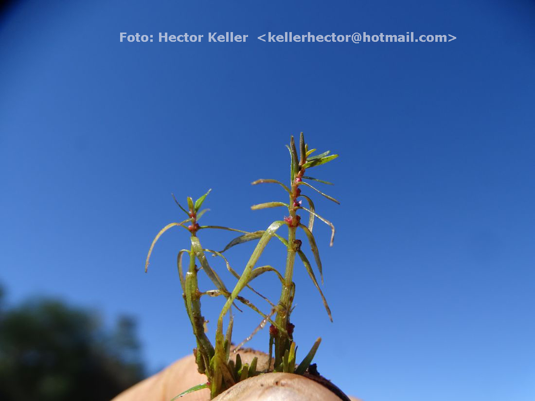Observaciones: Según Schostman (l.c.) C. truncata tiene frutos de 1 - 1,2 x 1,3 - 1,4 mm, largamente pedicelados, con ala ligeramente más ancha en el ápice de los mericarpos y pelos flabelados de las axilas foliares de 2 - 3 hileras de células. Estos caracteres difieren de los observados en el único material argentino coleccionado, sin embargo el resto de la descripción se ajusta bien a este ejemplar. De C. hermaphroditica L. y de C. fassetti Schotsman, especies afines, se diferencia porque en estas especies las células del mesocarpo son regulares, además la primera tiene frutos más o menos iguales en largo y ancho, con ala muy ancha y la segunda presenta hojas unidas entre sí en la base y frutos pedicelados (2 mm).