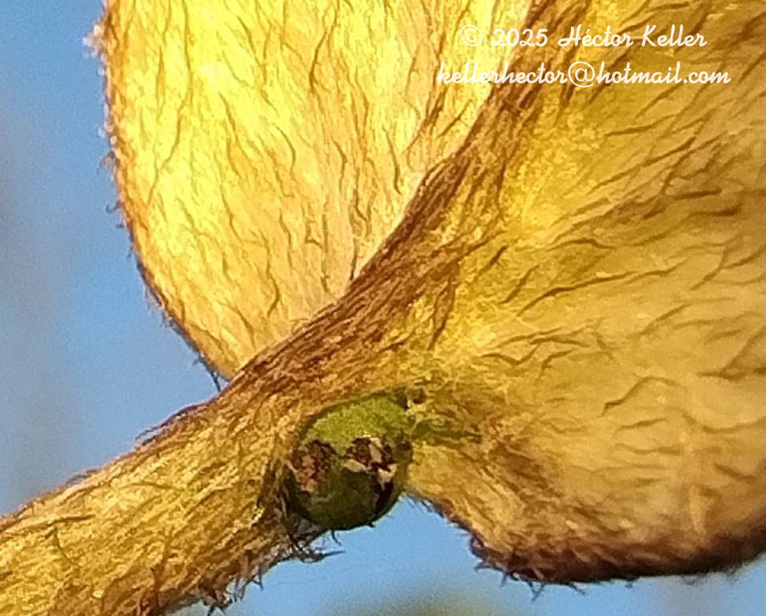 Lianas seríceas a glabrescentes, con estructuras tuberosas reservantes, entrenudos de 9-25 cm de largo. Hojas con estípulas triangulares, de 0,5-1,8 mm de largo, tomentosas en la cara abaxial; pecíolos de 1-5,5 cm de largo, seríceos, con 2 glándulas pequeñas hacia el ápice; láminas anchamente ovadas a orbiculares, enteras, en ocasiones 2-3 lobuladas, de 4,6-16 × 3,5-11,5 cm, de base cordada a truncada, ápice redondeado, mucronado, tomentosas en la cara abaxial y glabras o algo pubescentes en la cara adaxial, eglandulares o en ocasiones con glándulas dispuestas irregularmente en el margen. Inflorescencias en seudoumbelas, simples o compuestas; brácteas de 1-3 mm de largo, con 2-glándulas en la base; pedúnculos florales de 3,5-17 mm de largo, seríceos; bractéolas de 1-3 mm de largo, seríceas en la cara abaxial, eglandulares o con 2-glándulas en la base; pedicelos 6-12 mm de largo, seríceos, ensanchados en el ápice, incurvos en el botón floral; sépalos ovados, de 2-3,5 mm de largo, tomentosos en la cara abaxial, glándulas elipsoides, de 1,9-2,7 mm de largo; pétalos de 10-13,5 × 7-11 mm, planos o reflejos en la antesis, limbo orbicular, margen crenulado, glabros en la cara abaxial, el posterior más pequeño, con limbo oblongo y erguido en la antesis; androceo con 6 estambres fértiles, 5 opositipétalos y 1 opuesto al sépalo anterior, los cuatro restantes con anteras deformes, filamentos desiguales, triangulares, soldados en la base, de 1,6-3,5 mm de largo, glabros, anteras oblongas, de 0,7-1,8 mm de largo, con mechón de pelos en el ápice; ovario de 1,8-2 mm de largo, pubescente, estilos de 4-6 mm de largo, el anterior más delgado y recto, con apéndice bilateral, simétrico, los dos posteriores, más gruesos, algo curvados y apéndice unilateral. Mericarpos samaroides comprimidos, alas laterales reducidas, con una hilera de tubérculos pequeños, ala dorsal de 1,5-2 × 1,2-1,5 cm, trapeciforme, coriácea.