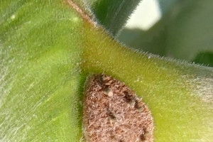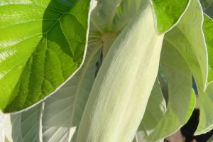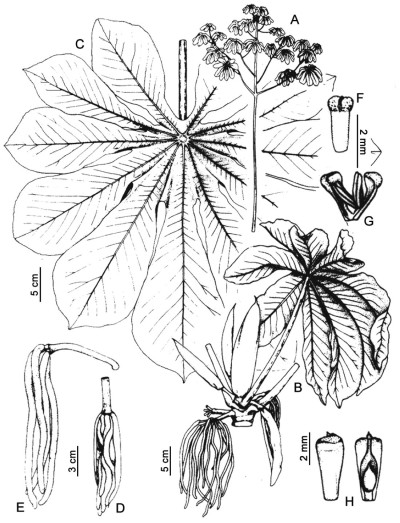 Árboles hasta de 12 m de alto. Hojas con pecíolos de 16-25 cm de largo; lámina de 20-35 × 20-35 cm. Inflorescencias de (2-)4-12 cm de largo. Flores con tépalos ca. 1 mm de largo; estambres con filamentos ca. 0,5 mm de largo, anteras ca. 1 mm de largo; gineceo de 1-2 mm largo. Infrutescencia ca. 8 mm de diámetro.